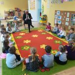 Dziś grupe I, II, III odwiedził Starosta Powiatu Ostrowskiego Pan Paweł Rajski, który chętnie przeczytał dzieciom wybrane bajki, a tym samym wziął udział w akcji ,,Cała Polska czyta dzieciom”. Dziękujemy za przybycie do naszego przedszkola!
