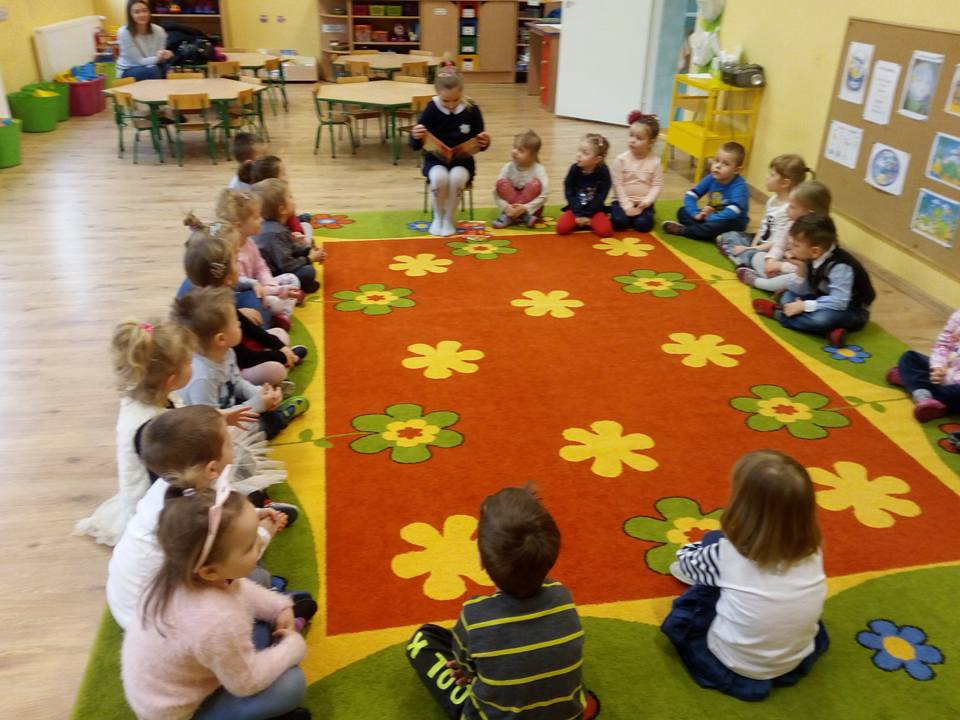 W ramach akcji ,,Cała Polska czyta dzieciom” grupie II bajkę przeczytała siostra Adama, absolwentka przedszkola.