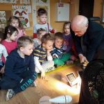 W dniu dzisiejszym grupę V odwiedził dziadek Krzysia, który jest nauczycielem w Zespole Szkół Technicznych w Ostrowie Wielkopolskim. Nasz gość pokazał nam kilka doświadczeń dotyczących źródeł energii.