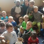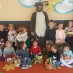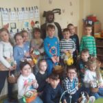 Po występie wszystkie grupy udały się na sale przedszkolne, gdzie czekały na dzieci niespodzianki. Każdy przedszkolak miał za zadanie odnaleźć swój koszyczek wielkanocny. W każdej grupie pojawił się też niesamowity gość – Zajączek, który zrobił sobie z dziećmi pamiątkowe zdjęcia.
