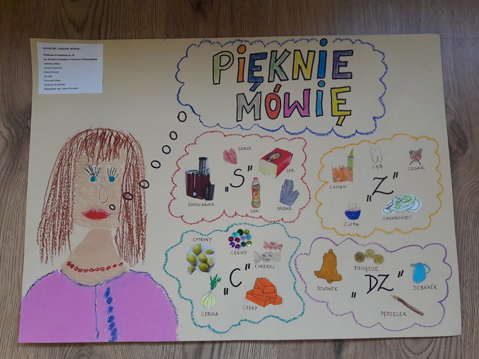 W miesiącu marcu, dzieci z grupy V przygotowały plakat na konkurs „Pięknie mówię”. Konkurs ten został zorganizowany przez Fundację Na Rzecz Osób Niepełnosprawnych „Nowa Nadzieja” z Kalisza,
