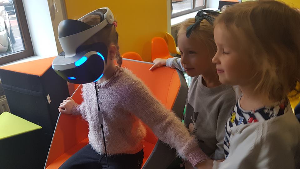 2 i 3 października grupy VIII i V odwiedziły Mediatekę. Oprócz fascynujących zabaw i gier edukacyjnych dzieci miały okazję obejrzeć bajkę w nietypowym kinie oraz zagrać na keyboardach, perkusji, a nawet nagrać piosenkę w studiu nagraniowym.