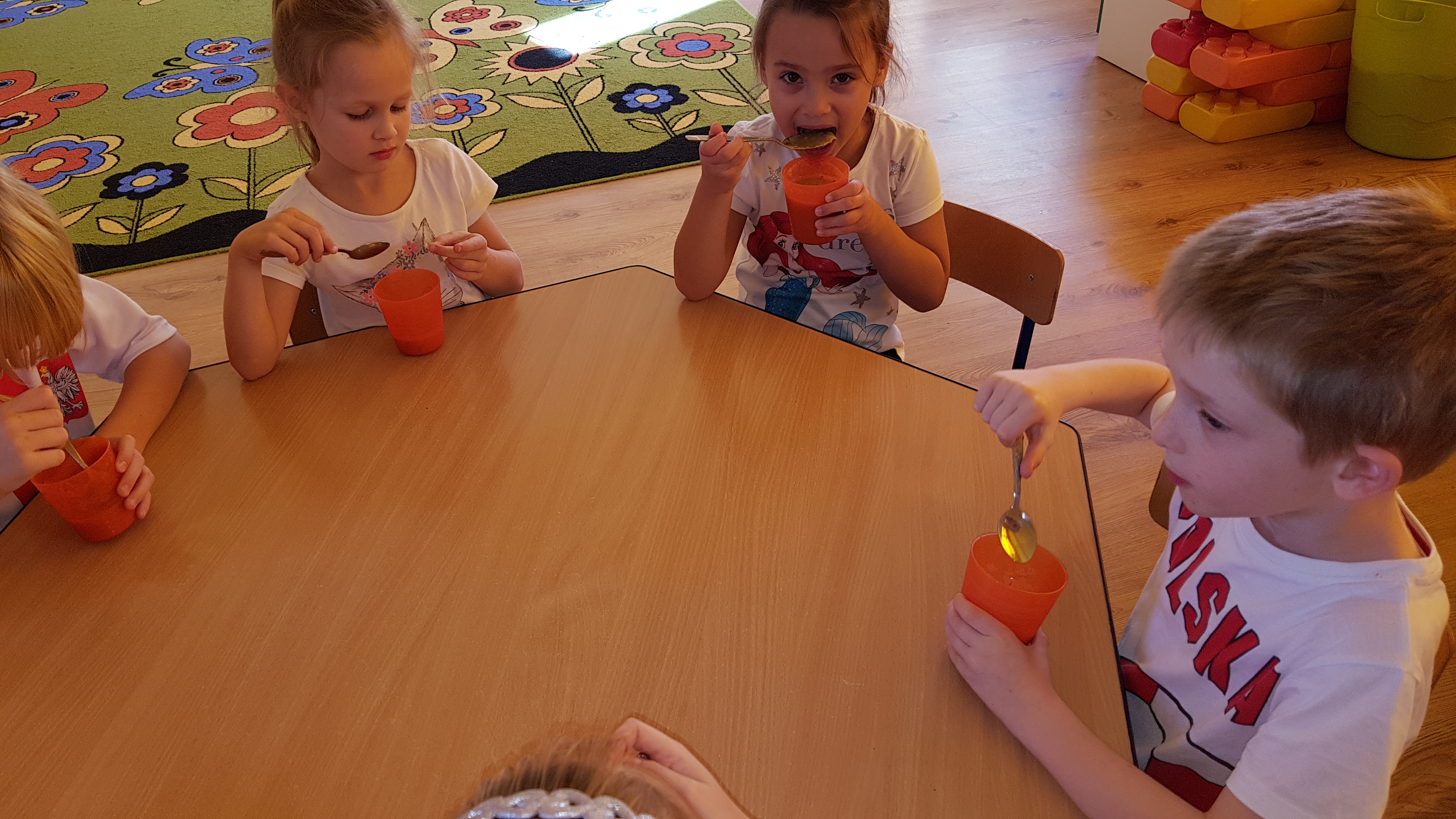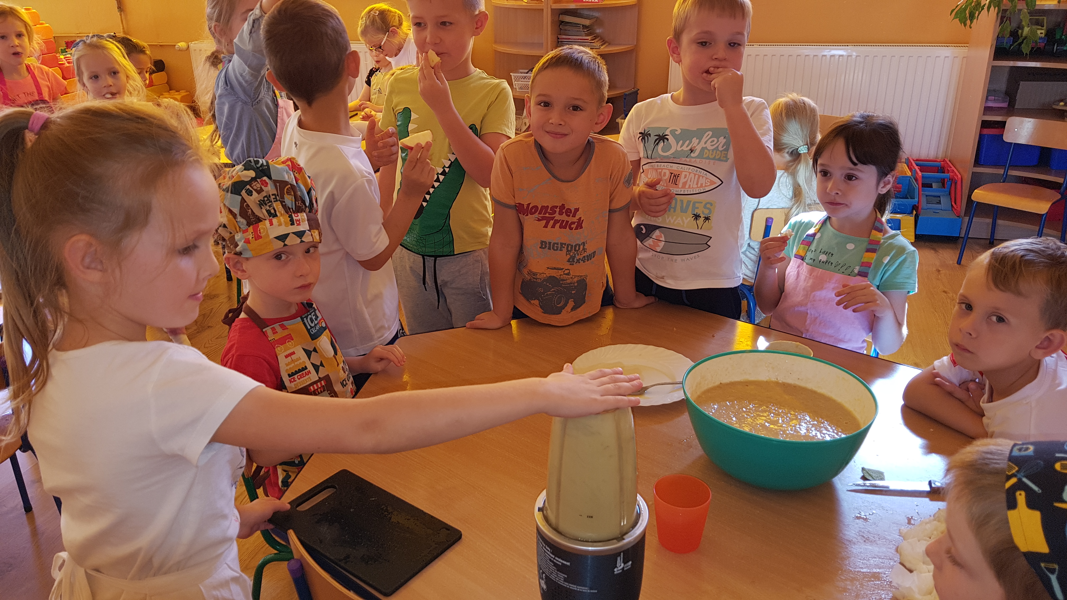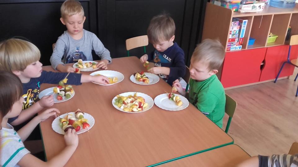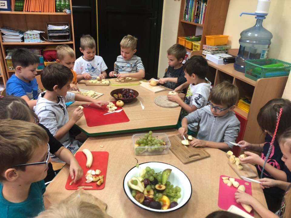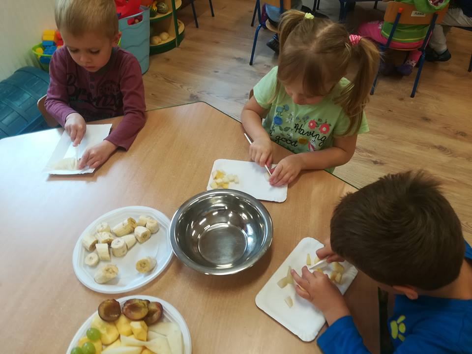 Nasze przedszkolaki wykorzystały bogactwo jesiennych ogrodów i przygotowały wiele smakołyków z pysznych i zdrowych owoców. W grupie VII i VIII – szaszłyki, w grupach III i IV – owocowe sałatki, w grupie V – smoothie. Natomiast grupa II udała się na pobliski stragan, gdzie od pani sprzedawczyni otrzymała pyszne i zdrowe winogrono.