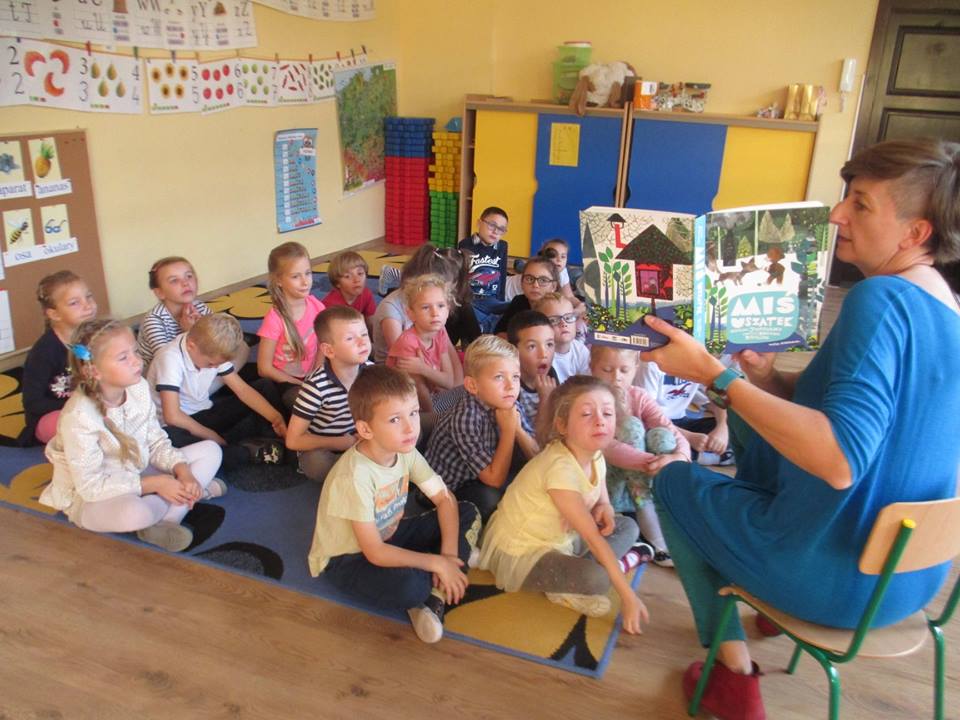 ,,Misiowe” warsztaty z plastykiem w grupie VI – wspólnie uszyliśmy misia o imieniu Śmieszuś, który będzie gościł w domach dzieci.