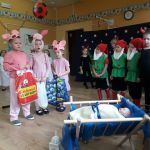 W dniu dzisiejszym, grupę V odwiedziły Dzieci z klasy 1b Zespół Szkół Sióstr Salezjanek w Ostrowie Wielkopolskim. Dla naszych miłych Gości wystąpiliśmy w przedstawieniu „Co się stało z Jasełkami?”.