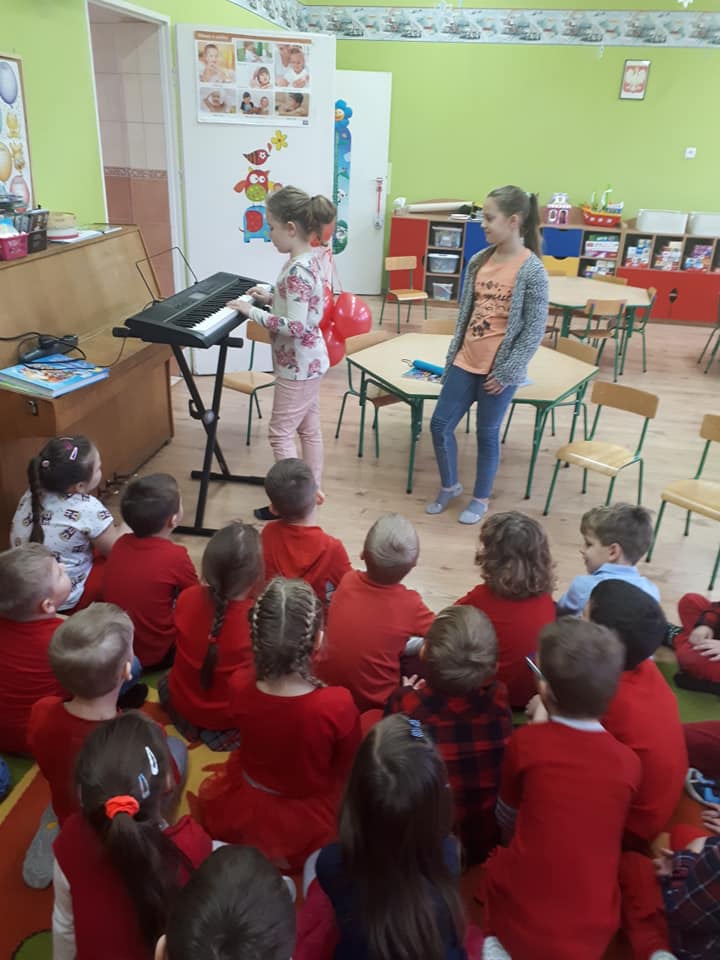 Wizyta absolwentek przedszkola Zosi i Zuzi w grupie IV. Dziewczyny przedstawiły naszym przedszkolakom grę na instrumentach muzycznych -flecie i keybordzie,czytaly bajkę oraz przeprowadziły zabawy muzyczne. Serdecznie dziękujemy za odwiedziny !!!