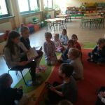 Dziś grupę III odwiedziły absolwentki naszego przedszkola Lena i Amelia, które przeczytały dzieciom bajki, a tym samym przyłączyły się do akcji ,,Mały miś w świecie wielkiej literatury”. Na koniec dziewczynki wpisały się do kroniki grupowej.