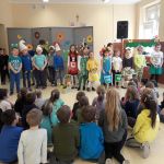 2 kwietnia przedszkolaki z grupy V odwiedziły Zespół Szkół Sióstr Salezjanek w Ostrowie Wielkopolskim. Dzieci obejrzały przedstawienie wiosenno – przyrodnicze „Wilcza przemiana”, w wykonaniu uczniów klasy 1b.