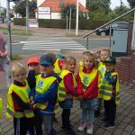 Dzieci z grup III, IV, V, VI i VII wybrały się na pobliskie skrzyżowania w ramach omawianej tematyki o bezpieczeństwie na drodze i na przejściach dla pieszych. Dzieci poznały zasady przechodzenia przez ulicę oraz wybrane znaki drogowe.
