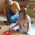 W piątek dzieci z grupy III wspólnie z tatą Nikolki p. Adamczakiem wykonały regał. Była super lekcja stolarki dzieci wbijały kołki, gwoździe, wkręcały śruby i wierciły otwory. Dziękujemy za świetną zabawę i taki piękny regał do naszej sali.
