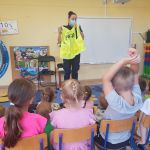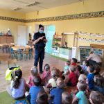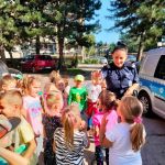 Dziś najważniejszym wydarzeniem dla wszystkich przedszkolaków była wizyta policjantki. Tematem numer jeden było bezpieczeństwo dzieci na drogach, lecz nie obyło się bez wielu pytań maluchów dotyczących codziennej pracy policjanta. Pani policjantka rozmawiała z dziećmi o bezpiecznych zachowaniach na drodze, przypomniałai jak prawidłowo przechodzić przez jezdnię, jak zachować się, gdy zaczepi nas obca osoba. Największym zainteresowaniem wśród maluchów cieszyły się opowiadania o codziennej pracy Policji oraz demonstracja sprzętu i wozu policyjnego. Dzięki takim spotkaniom na pewno żaden z maluchów nie będzie obawiał się spotkania z funkcjonariuszem. Policjant będzie kojarzył się przedszkolakom, jako osoba, której nie należy się bać, i do której zawsze i w każdej sytuacji można zwrócić się o pomoc.