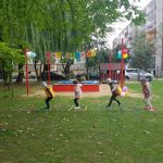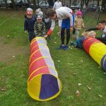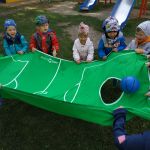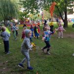 Były zabawy z piłką nożną, piłką ręczną oraz zawody biegowe z przeszkodami.