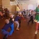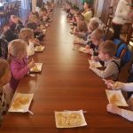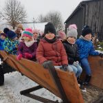 W mieszczącej się tam restauracji „Zielony dworek” odbyły się warsztaty świąteczne, których wraz byliśmy uczestnikami. Przez kilka godzin pobytu nie było czasu na nudę, mieliśmy wiele wspaniałych zajęć – uczyliśmy się lepić pierogi, ozdabialiśmy drewniane choineczki, karmiliśmy zwierzęta, podziwialiśmy piękne konie, jechaliśmy wozem, a to wszystko przeplatane było przezabawnymi tańcami i konkursami z pomocnikami