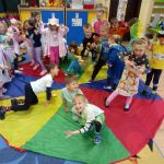 W tym dniu Kangurki obchodziły „Dzień Dziwaka”. Pomysłodawcą tego tego święta był profesor psychologii społecznej Philip Zimbardo. Zwrócił on uwagę na to, że „dziwacy” są ekscentryczni, mają nietypowe upodobania i przyzwyczajenia przez co wyróżniają się w tłumie, ale to nie znaczy że są gorsi od innych. I dlatego nasze przedszkolaki poprzez ubiór i zachowanie zamieniły się na chwilę w dziwaków. I co się okazało??? Że są tak samo fajni jak wcześniej.