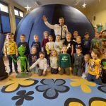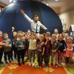 9 i 10 stycznie gościliśmy w naszym przedszkolu mobilne planetarium Astro Arena. Dzieci miały wspaniałą okazję poczuć prawdziwy kosmos, zobaczyć gwiazdy i gwiazdozbiory, inspirujący Księżyc i gorące Słońce. Poznały też kolorowe mgławice i wielkie galaktyki… W tą wspaniałą podróż zabrał nas Ufoludek Ziggy i pan Daniel Stasiak.