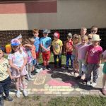 31.05 w naszej grupie odbył się Dzień Kolorowy dzieci bawiły się w zabawy z wykorzystaniem chusty animacyjnej, odgadywały zagadki o kolorach, a także ozdabiały kreda chodnik przedszkolny dzięki temu stał się on ,,piękny i kolorowy” na zakończenie przedszkolaki otrzymały dyplom.
