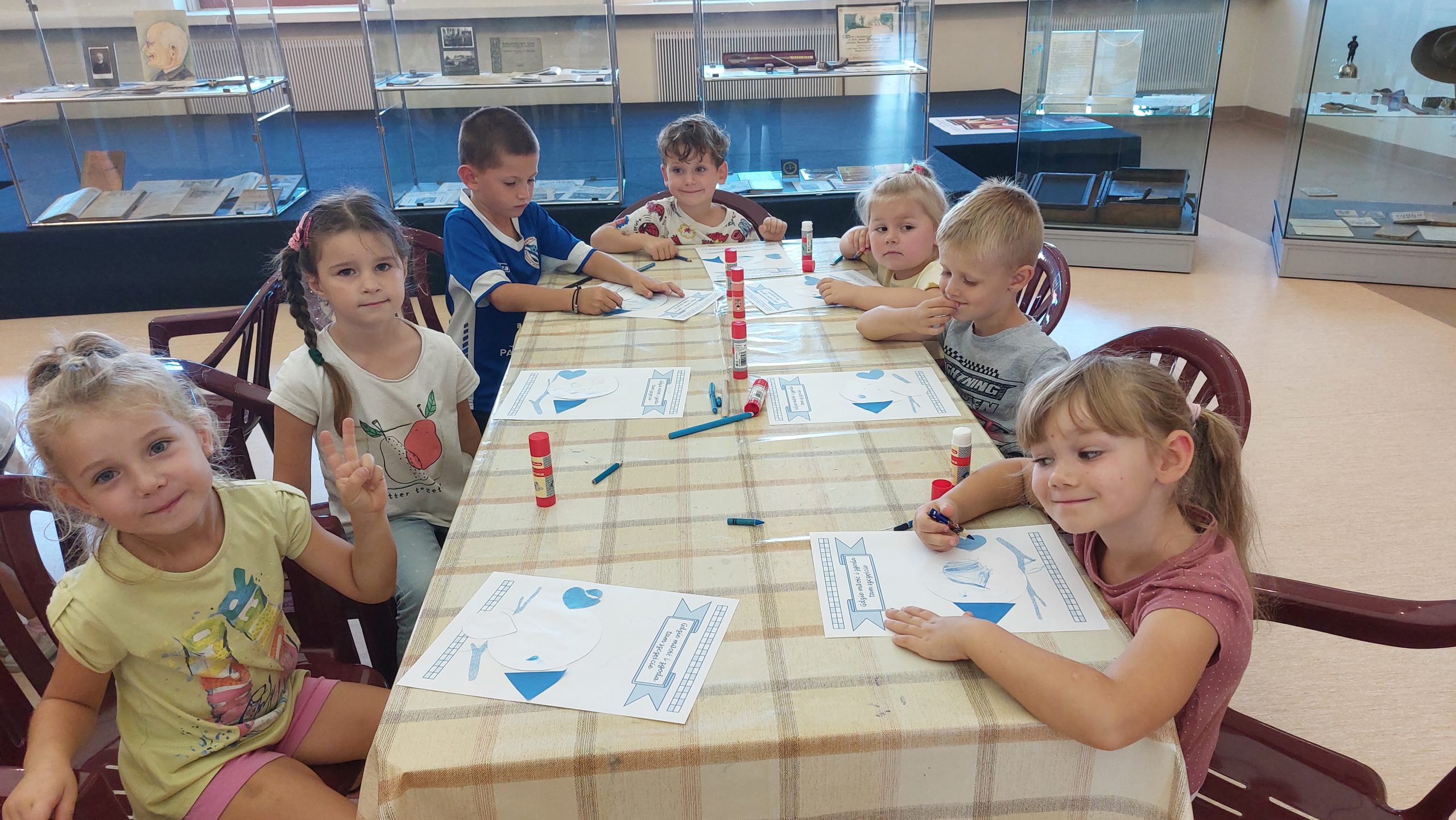 Po zwiedzeniu wystawy dzieci miały okazję wykonać pracę plastyczną inspirowaną kuchenną makatką jaka wisiała w kuchni babuni.