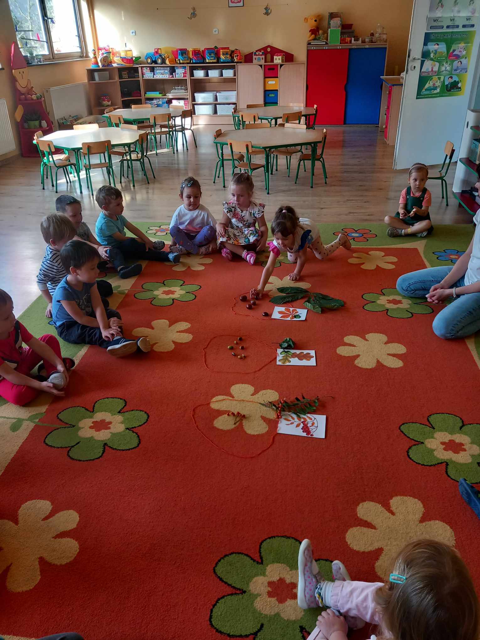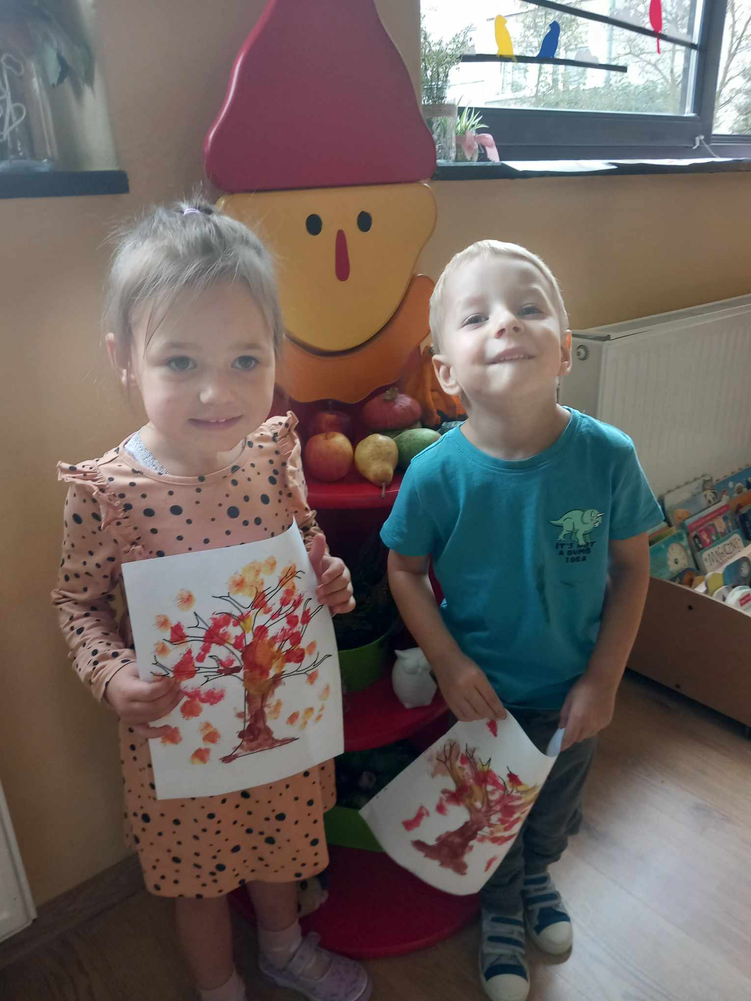 W piątek 22.09. witaliśmy jesień w grupie Kangurków. Dzieci przyniosły do przedszkola dary jesieni, które posegregowały i poznały nazwy drzew z których te dary pochodzą. Nie zabrakło zabaw ruchowych, tańca i ćwiczeń oddechowych. Na koniec dzieci stworzyły jesienne drzewa z wykorzystaniem farb w jesiennych kolorach.