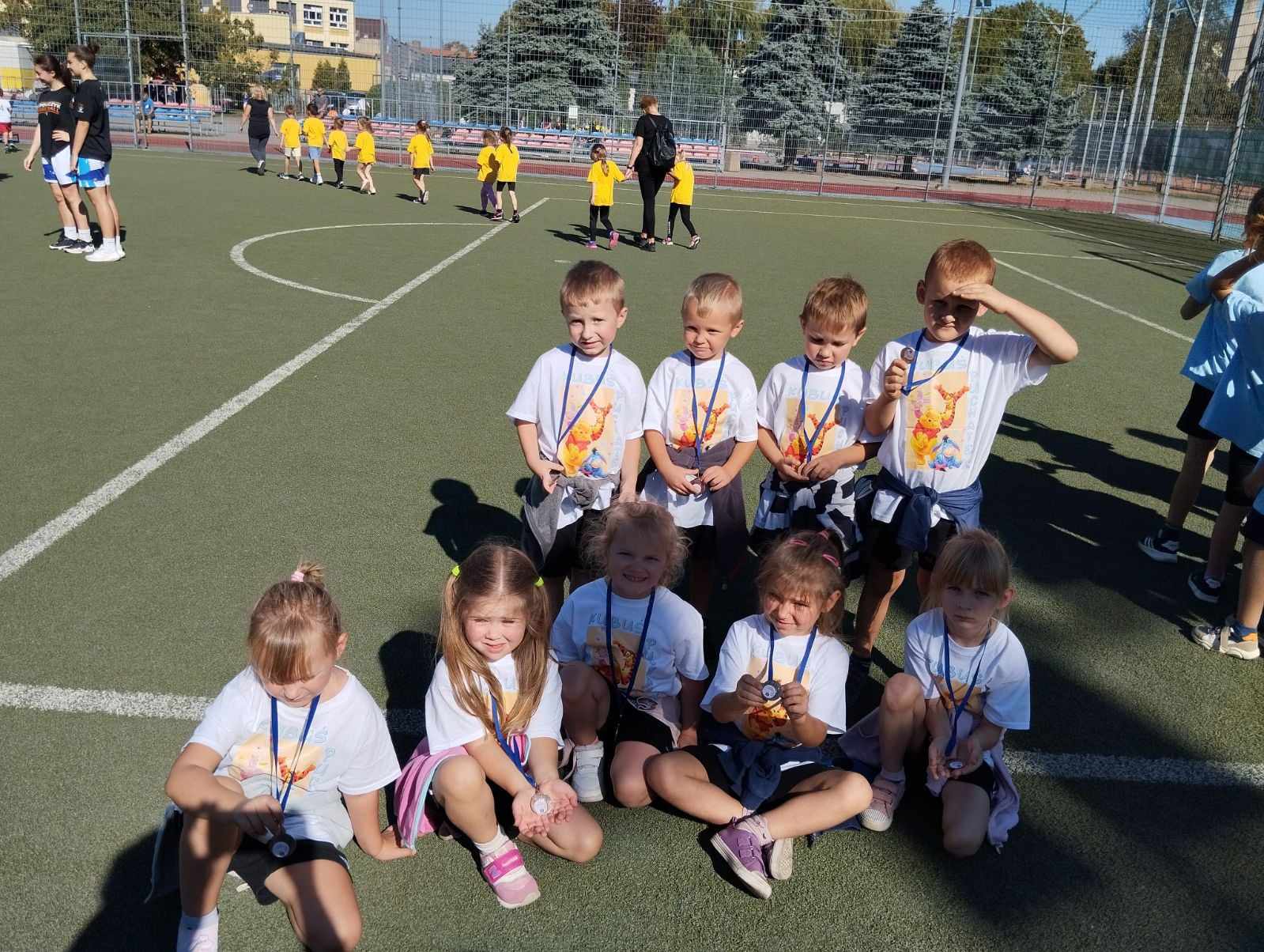 28.09.2023 r. Dzieci z grupy VIII wzięły udział w VIII Olimpiadzie Lekkoatletycznej zorganizowanej przy szkole Podstawowej nr 1 w Ostrowie Wielkopolskim. W Olimpiadzie udział wzięło pięć dziewczynek oraz czterech chłopców z grupy Kłapouszków. Dzieci uczestniczyły w różnych aktywnościach: biegu na 30m, rzucie piłeczką palantową, skoku w dal z rozbiegu oraz w biegu sztafetowym. Pogoda w tym dniu dopisała, było bardzo słonecznie, więc Olimpiada odbyła się na boisku przy szkole. Dzieci za udział w Olimpiadzie otrzymały medale. Fotorelacja poniżej.