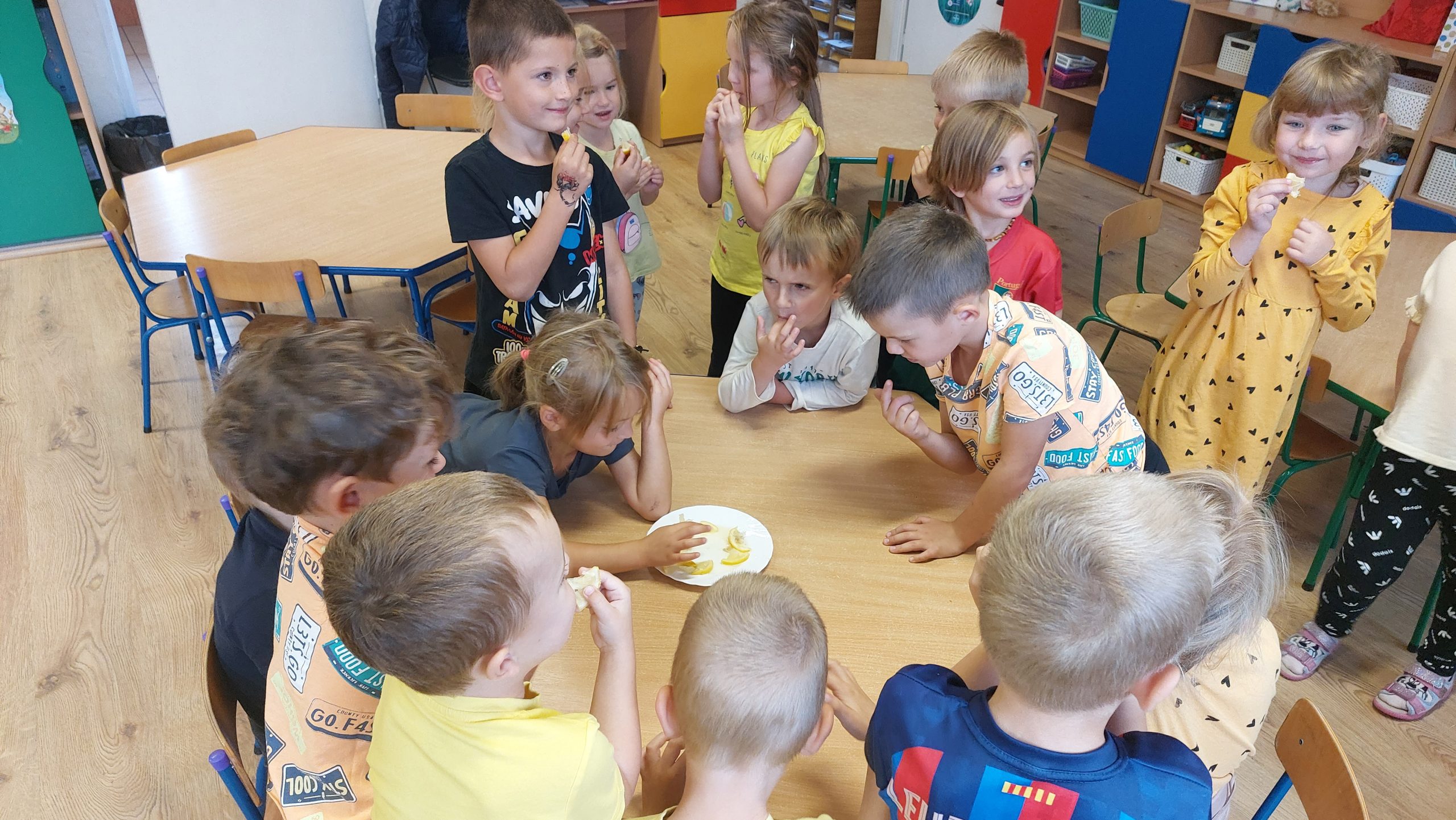 Dzieci miały możliwość spróbowania cytryny – sprawdzaliśmy czy da się zjeść cytrynę ciągle się uśmiechając. Królem cytrynowego uśmiechu okazał się Gniewko.