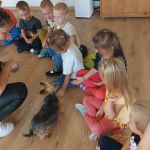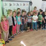 Dzieci miały możliwość nakarmić pieska ulubionym przysmakiem, widziały jak pies reaguje na komendy Pani Amandy.