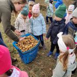 „Święto pieczonego ziemniaka” – Tygryski wyruszyły na wycieczkę do Folwarku Jeździeckiego “JURAND” w Przygodziczkach. Celem wyjazdu było przybliżenie dzieciom wiedzy przyrodniczej, promowanie aktywnego i zdrowego stylu życia na łonie natury. W gospodarstwie agroturystycznym czekało na dzieci mnóstwo atrakcji , m.in. : własnoręcznie kopały i zbierały ziemniaki, było pieczenie ziemniaków, robienie gziki- potrawy charakterystycznej dla kuchni wielkopolskiej, spacer po lesie i na koniec konsumpcja tego co sami przygotowali. Tygryski zakończyły obchody tego jesiennego święta w bardzo dobrych humorach, to był radosny i pełen wrażeń dzień!