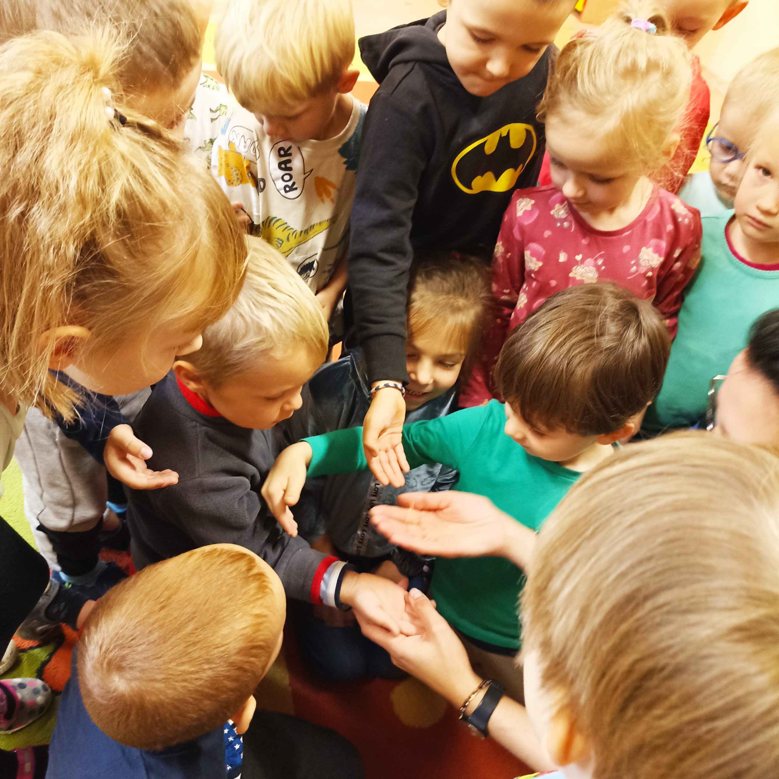 Po czytaniu książeczki Pani Anita miała dla dzieci nie lada niespodziankę – wprowadziła naszą grupę w świat patyczaków – opowiadając dzieciom co nieco na ich temat.