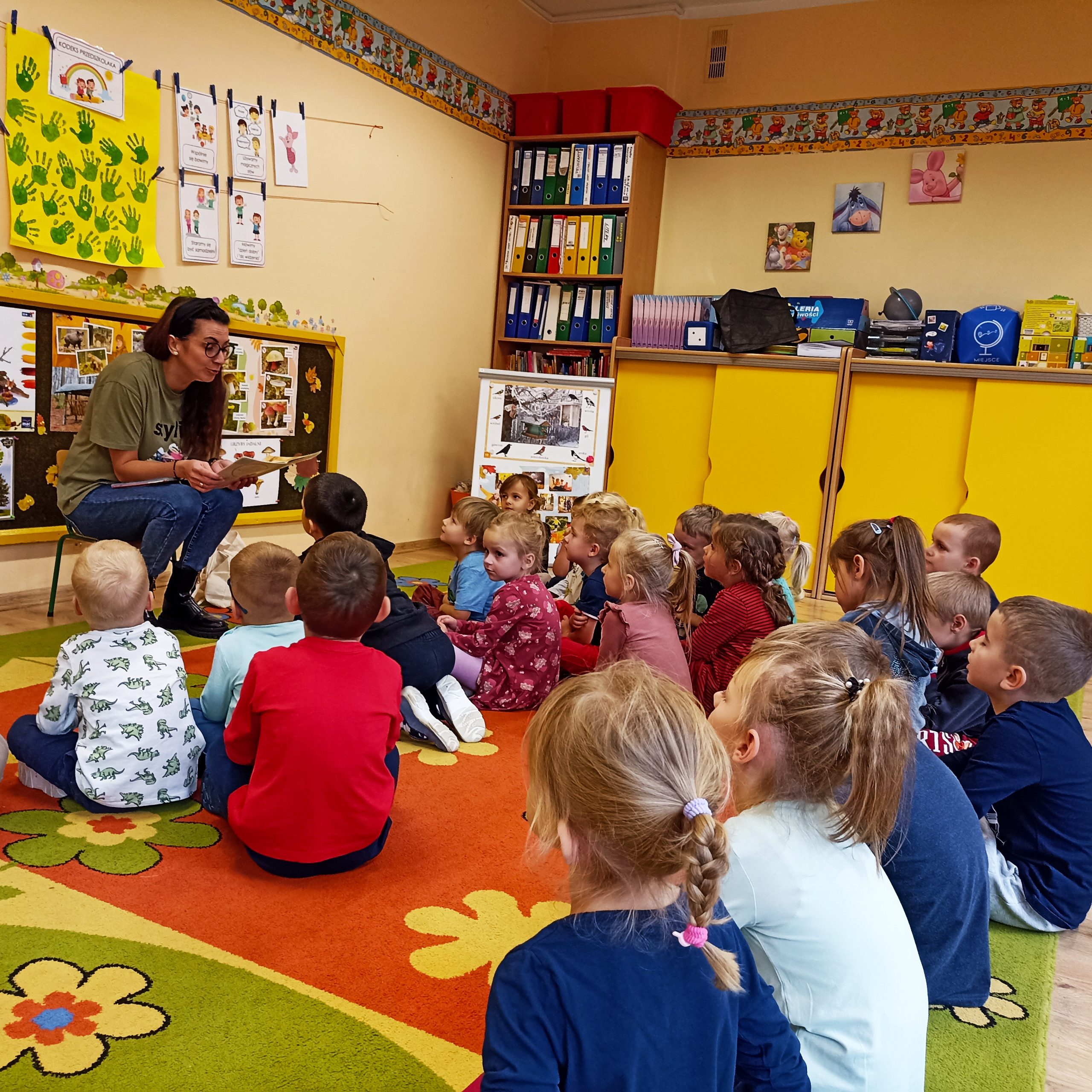 Pani Anita przeczytała dzieciom książeczkę „Maks, który chciał mieć zwierzątko” i porozmawiała z dziećmi na temat posiadania własnych zwierząt i opieki nad nimi.