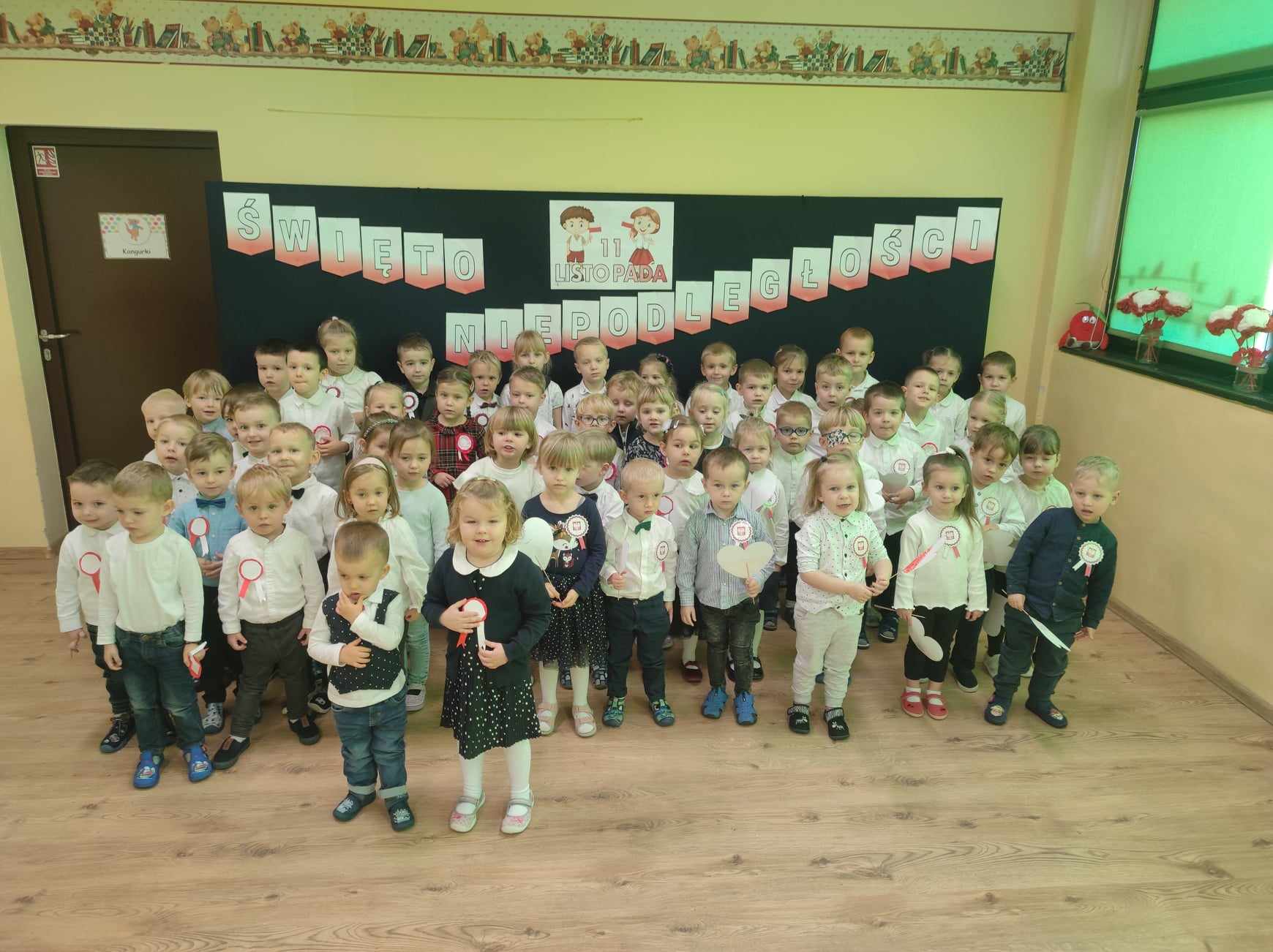 10 listopada bieżącego roku w naszym przedszkolu odbyła się uroczystość upamiętniająca 105 rocznicę odzyskania niepodległości przez Polskę. Z tej okazji dzieci z wszystkich grup zebrały się, aby uroczyście świętować ten wyjątkowy dla Polaków czas. Wszyscy z powagą i w dużym skupieniu oglądali programy artystyczne przygotowane przez dzieci, a na koniec uroczyście odśpiewano Hymn Polski.