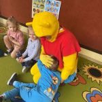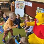 Dzieci z grupy „Sówki” dzięki współpracy z Książnicą Pedagogiczną przystąpiły do krótkiego cyklu czytelniczego „MIŚ PRZYJACIELEM DZIECI”. W poniedziałek 20 listopada odbyło się trzecie nasze spotkanie z Misiem. Na porannych zajęciach towarzyszył nam dobrze nam znany Miś – Kubuś Puchatek. Kubuś Puchatek jest patronem naszego przedszkola dlatego nie trzeba go przedstawiać naszym przedszkolakom, co nie oznacza że zajęcia z misiem były nudne. Tego dnia sam Kubuś Puchatek odwiedził naszych przedszkolaków. Dzieci miały okazję przytulić się, przybić piątkę lub zrobić „żółwika”. Kubuś Puchatek słuchał bajeczki o „sobie samym” i marzył o „małym co nieco”. Po czytaniu dzieci wykonały szereg zadań dotyczących Kubusia Puchatka. Chętne dzieci mogły ułożyć puzzle z jego wizerunkiem, zaprojektowały kubusiowe zakładki do książek oraz wykonały portret Kubusia Puchatka. Dziękujemy bardzo Pani Małgosi za zaangażowanie i współpracę. To był bardzo miły i radosny poranek.