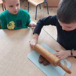 Dzieci zamieniły się w małych pomocników Mikołaja i z wielką ochotą wałkowały i wykrawały ciasto piernikowe.