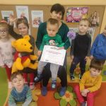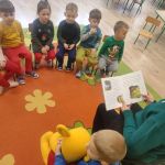Dziś w ramach akcji „Mały miś w świecie wielkiej literatury” naszą grupę odwiedziła pani Halina – babcia Tymka. Z okazji Dnia Kubusia Puchatka przeczytała Kangurkom opowiadania o mieszkańcach Stumilowego lasu. Maluszki dowiedziały się również jakie były ulubione zabawy i zabawki babci Tymka.