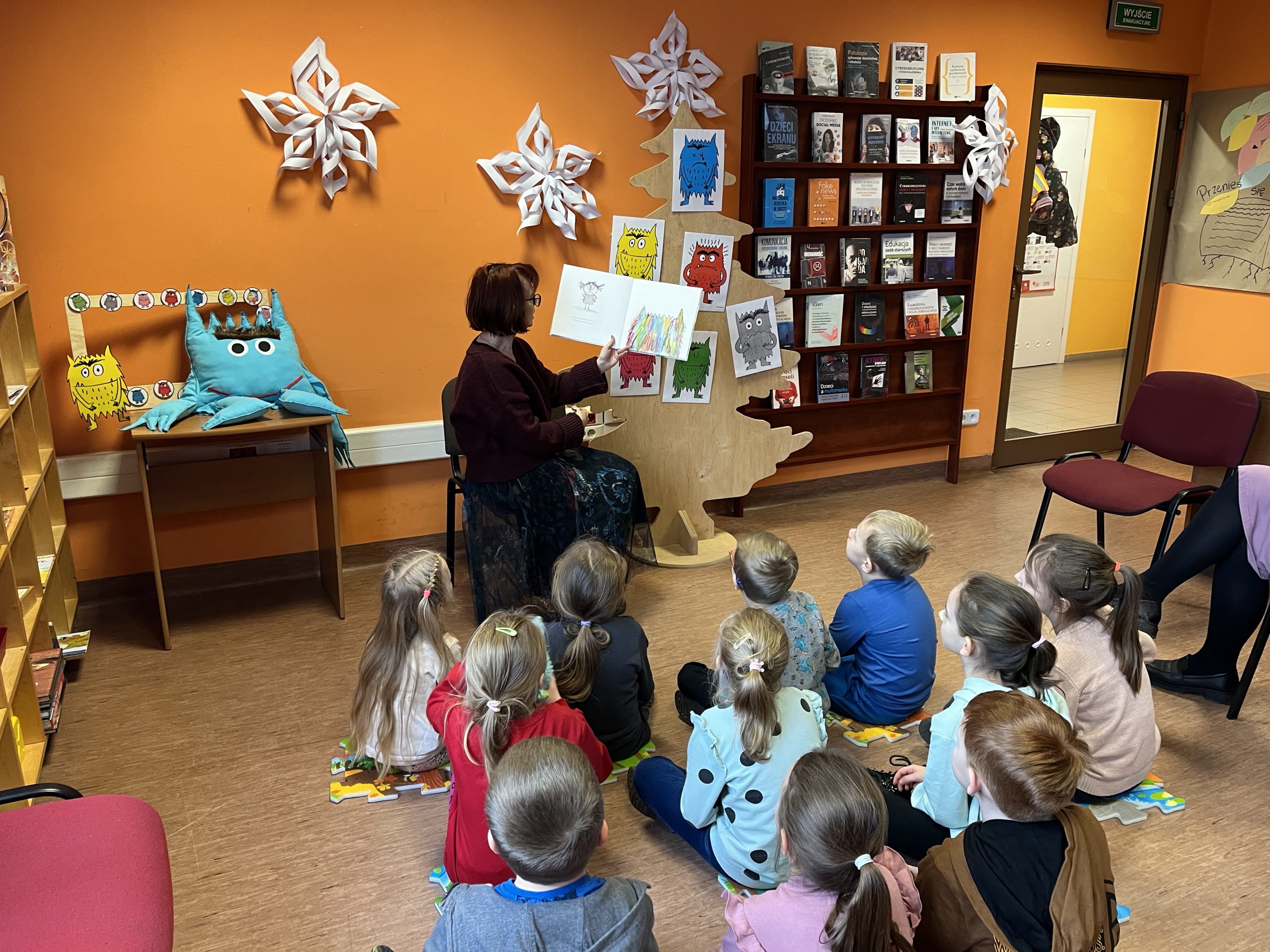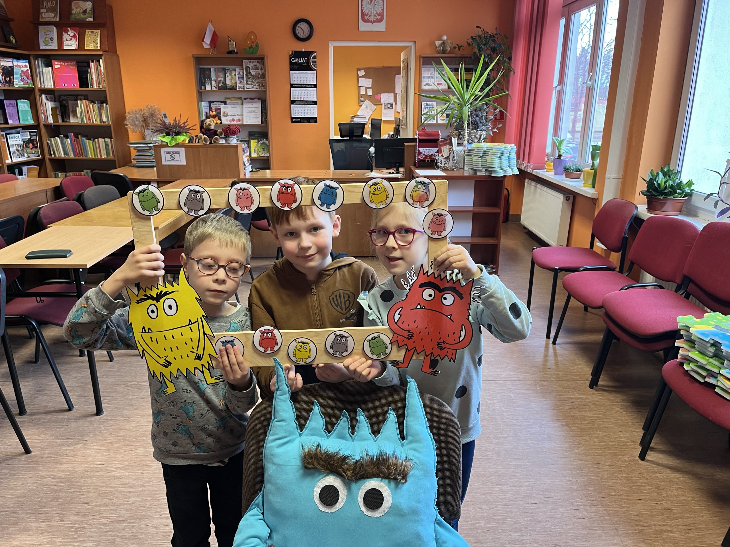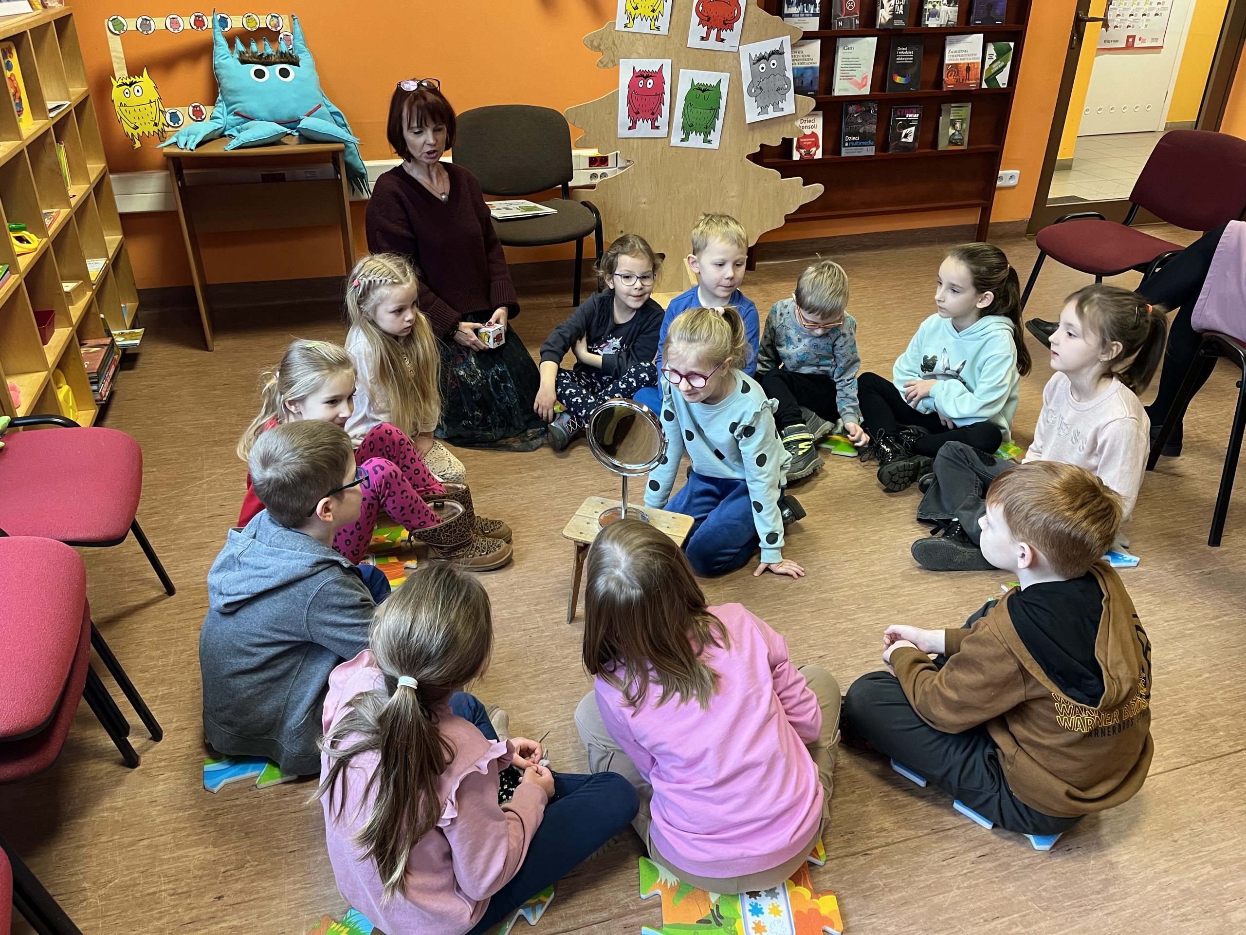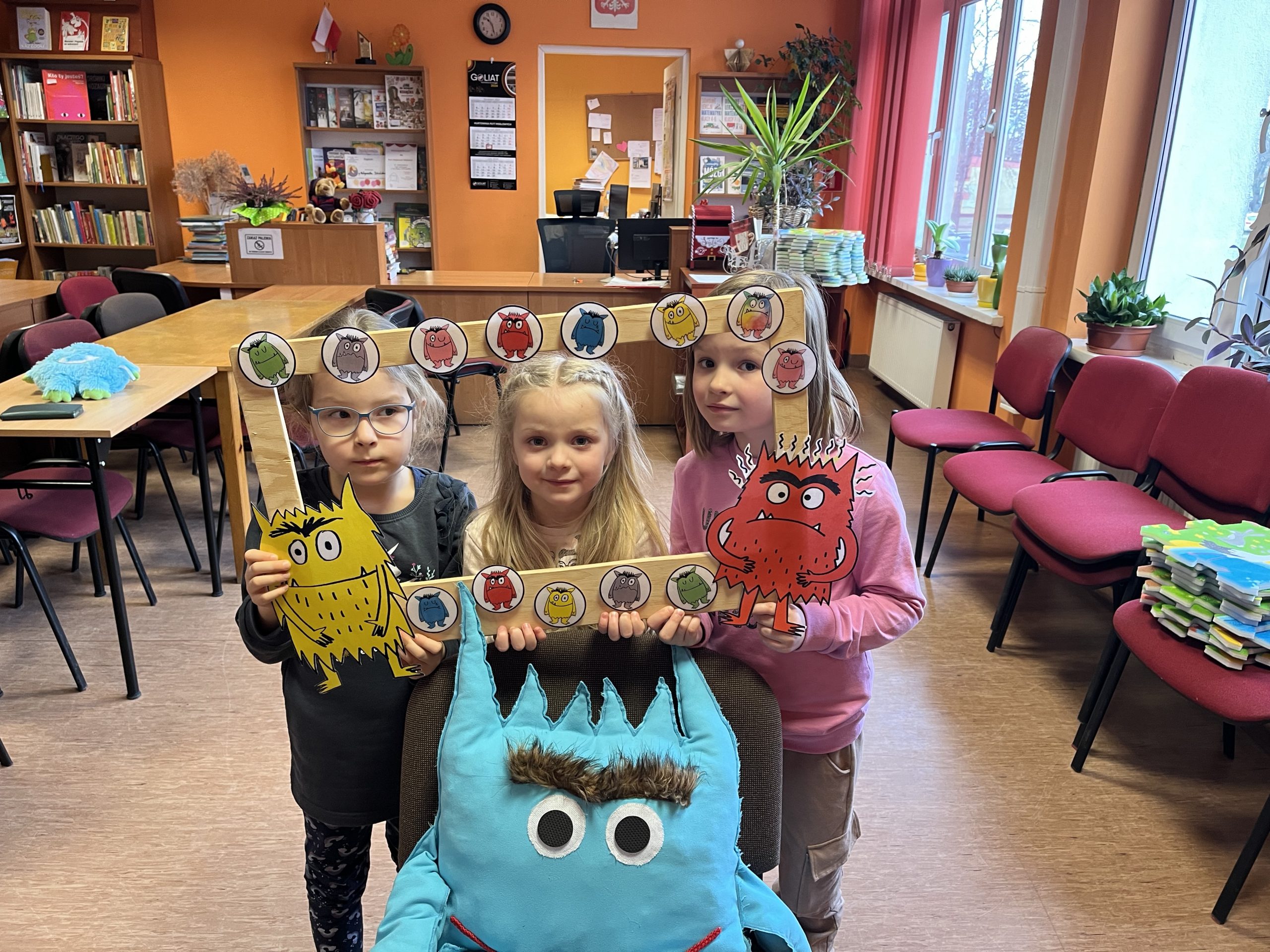 Warsztaty biblioteczne w grupie Puchatki w ramach projektu: „NASZ BARWNY ŚWIAT EMOCJI” – Kolorowy Potwór -moje emocje.