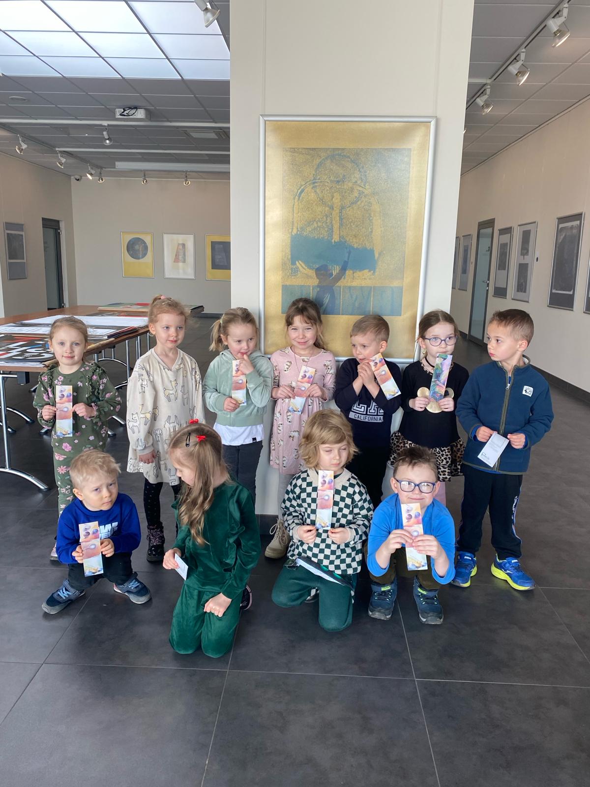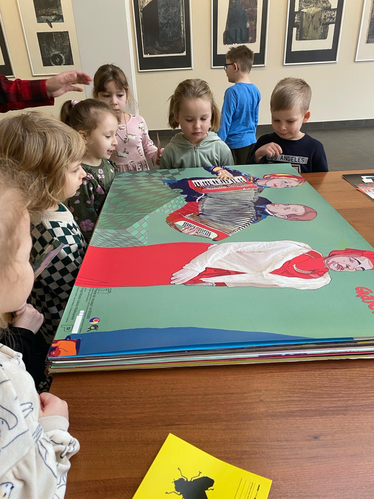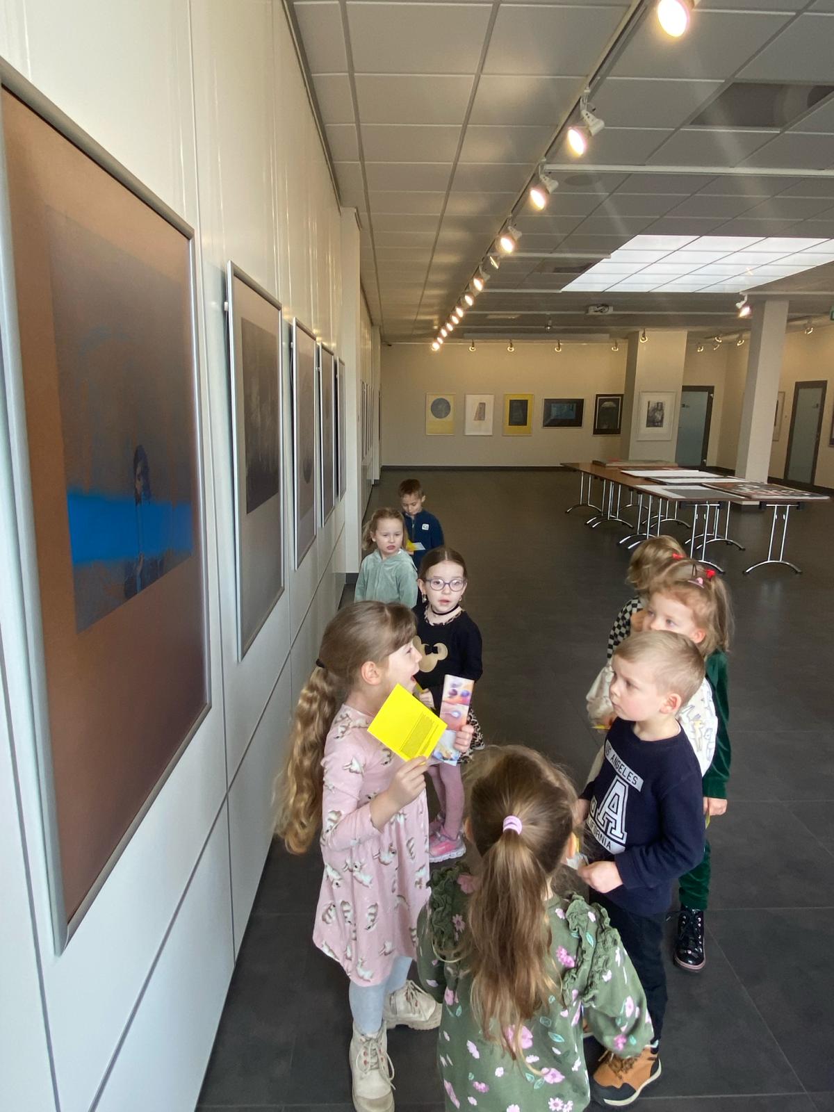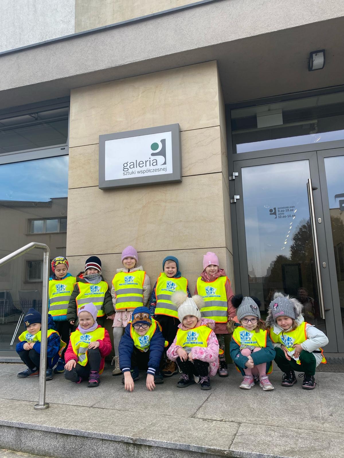 27.02.2024 r. wybraliśmy się do Galerii Sztuki, gdzie prezentowana jest wystawa grafiki Pana Adama Czecha. Dzieci z wielkim zainteresowaniem oglądały ilustracje pełne tajemniczych kształtów.Dziwiły je nieco elementy umieszczone na płótnach: krzywe, okręgi, twarze, cyfry dziwne zwierzęta – ni to ptaki ni to dinozaury. Dzieci opiniowały zauważone detale, pracowała wyobraźnia i rozwijaliśmy kreatywne myślenie. Spacer odbył się w godzinach dopołudniowych i ustaliliśmy że gdy tylko pogoda nam na to pozwoli odwiedzimy galerie ponownie.