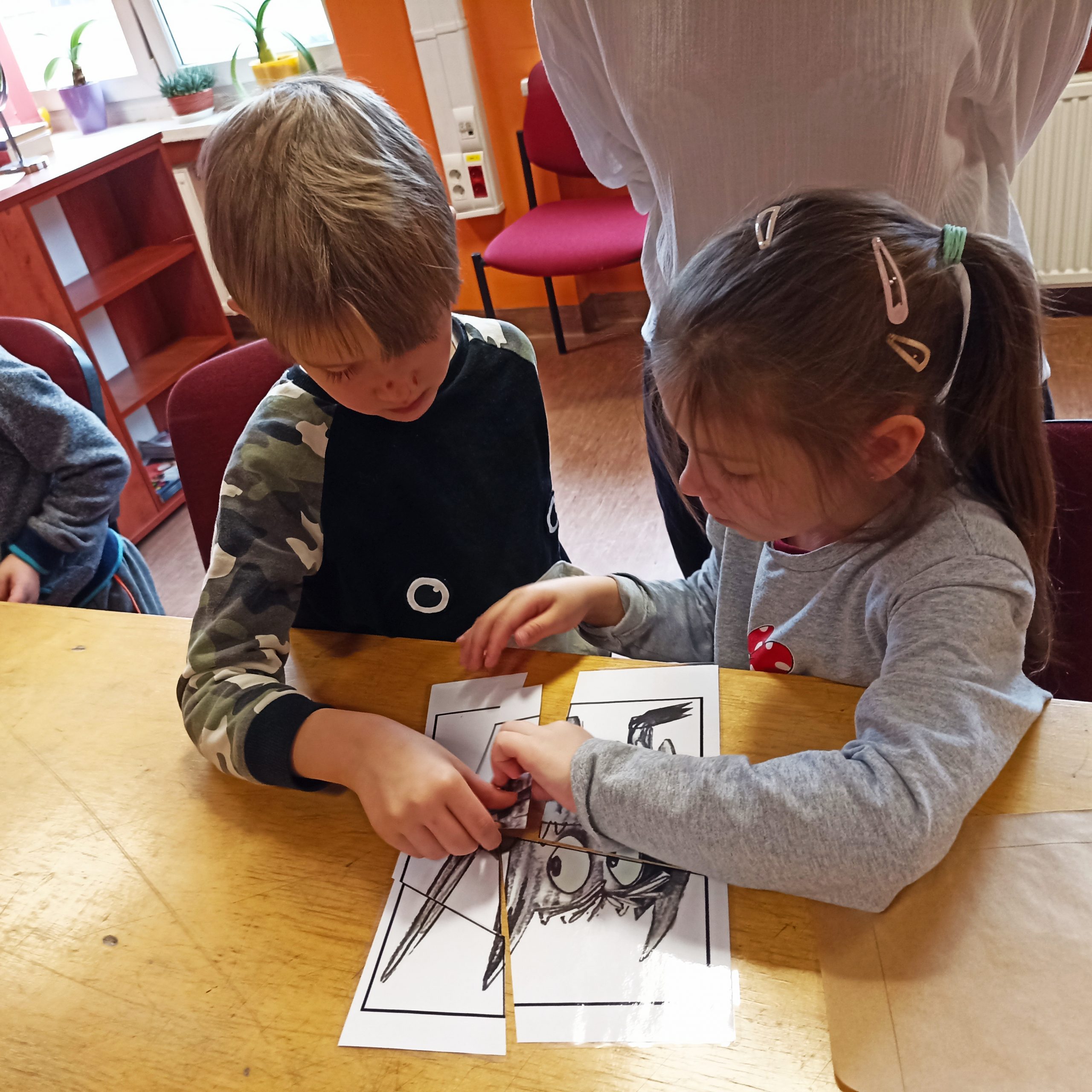 Przedszkolacy przyporządkowywali ilustracje przedstawiające różnorodne sytuacje do konkretnych słoiczków emocji.