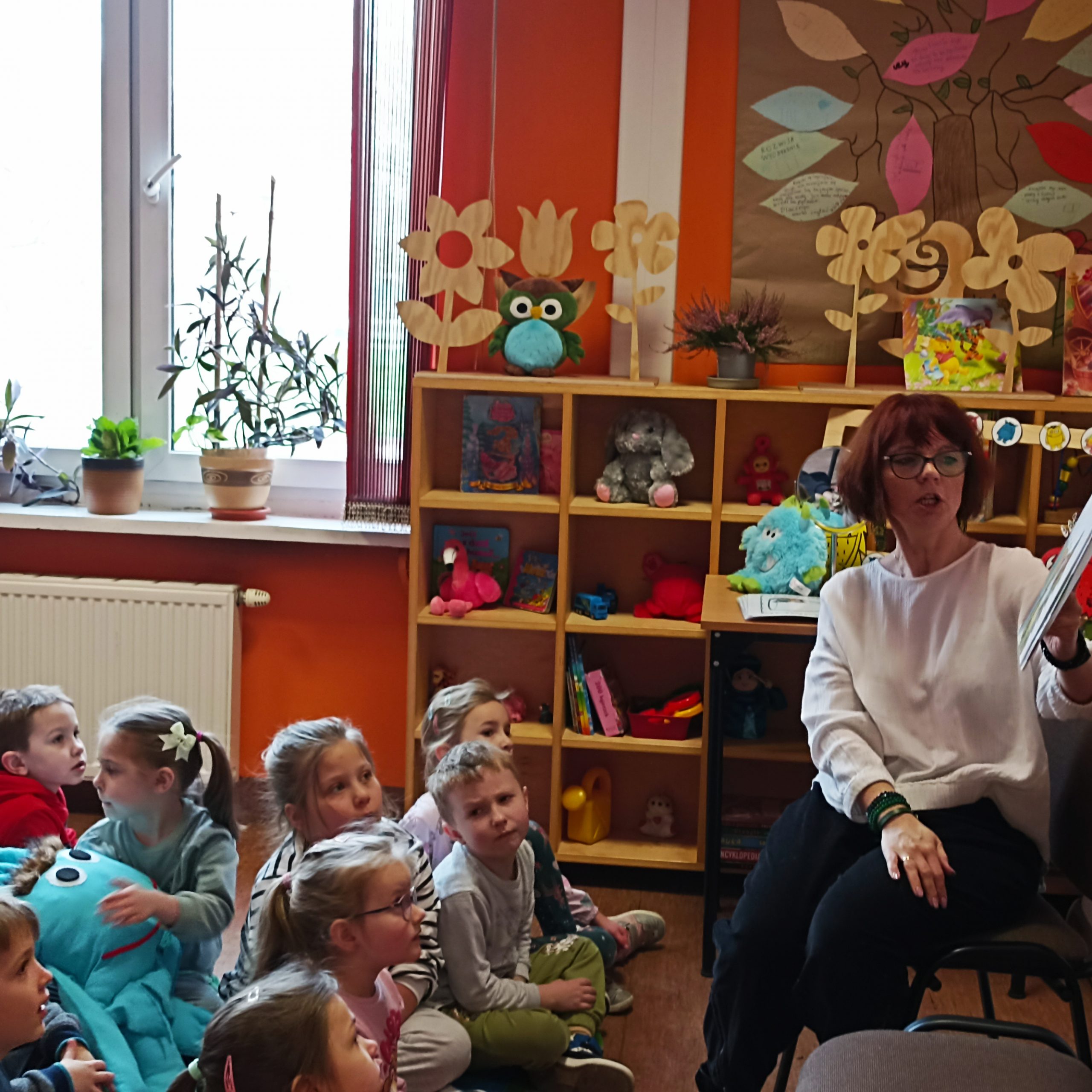 Wysłuchały opowiadania o emocjach ,które podpowiedziało dzieciom, jak poradzić sobie z czekającymi na nie zadaniami!