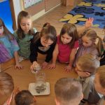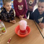 W tym tygodniu Puchatki przerabiały tematykę o doświadczeniach-eksperymentach. Działania badawcze są bardzo kreatywne, dzięki czemu przedszkolaki poszerzyły  swoją wiedzę, uruchomiając wyobraźnię, koncentrację uwagi, spostrzegawczość oraz  wytrwałość . Wykonywane eksperymenty zachęcały dzieci do myślenia, porównywania, wyciągania wniosków. Do ulubionych  eksperymentami z pewnością możemy zaliczyć: ,,Wulkan”, ,,Pompujący się balon”, czy  ,,Dwukolorowa ciecz”. Z zajęć tych przedszkolaki  czerpały wiele radości, była to dla nich wspaniała zabawa.