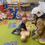 Dnia 06.03.2024 nasze przedszkole odwiedziła ponownie pani Ania na co dzień pracująca jako Ratownik Medyczny a także w Ochotniczej Straży Pożarnej. Przekazała dzieciom wiele cennych informacji o udzielaniu pierwszej pomocy oraz o pracy strażaka. Przedszkolaki przypomniały sobie także numery alarmowe, starsze grupy przećwiczyły resuscytację na fantomie, natomiast w młodszych grupach pani Ania przeczytałam dzieciom przygody o ,,Kici Koci i strażaku Jacku” bardzo dziękujemy za przybycie.
