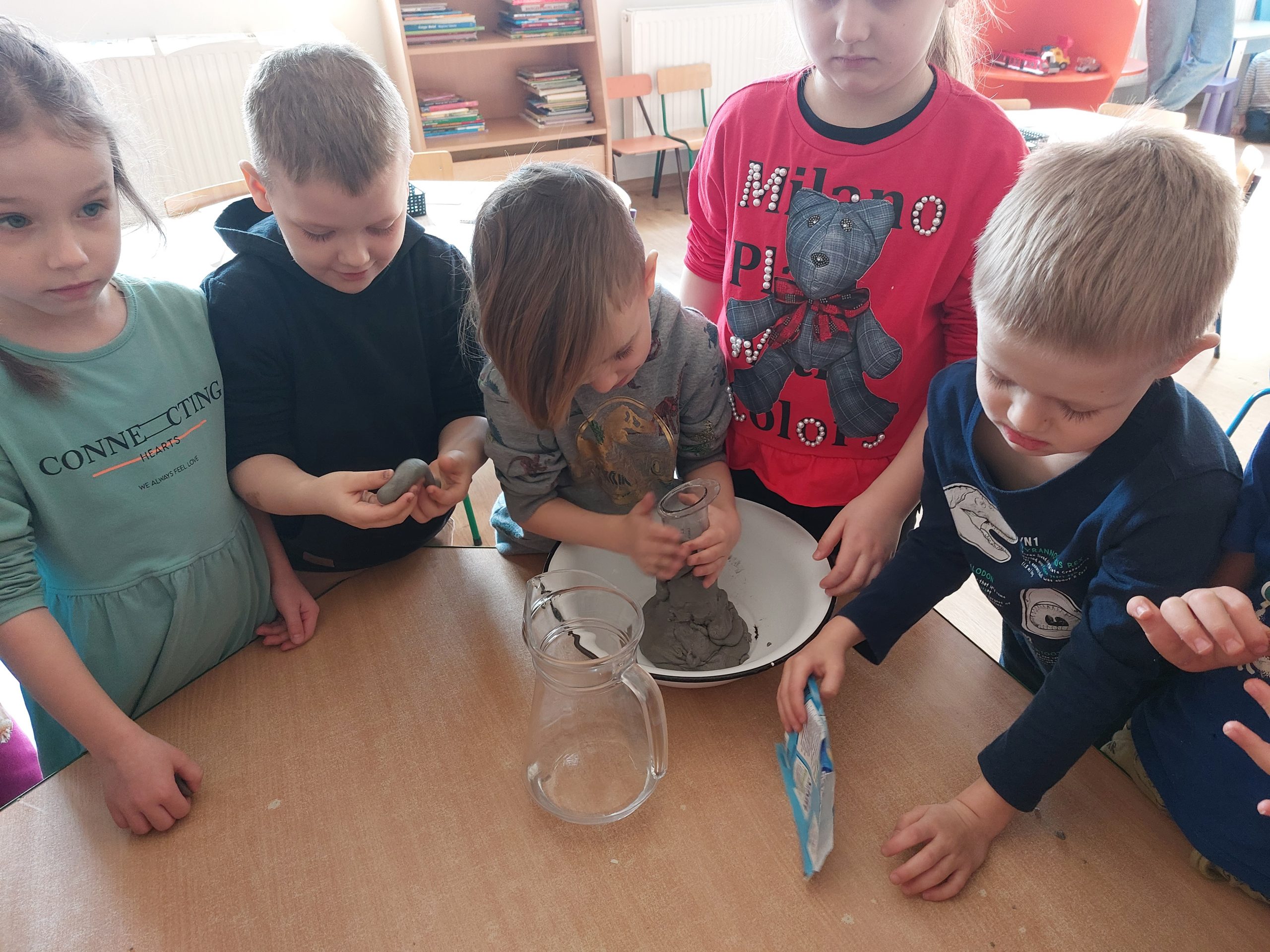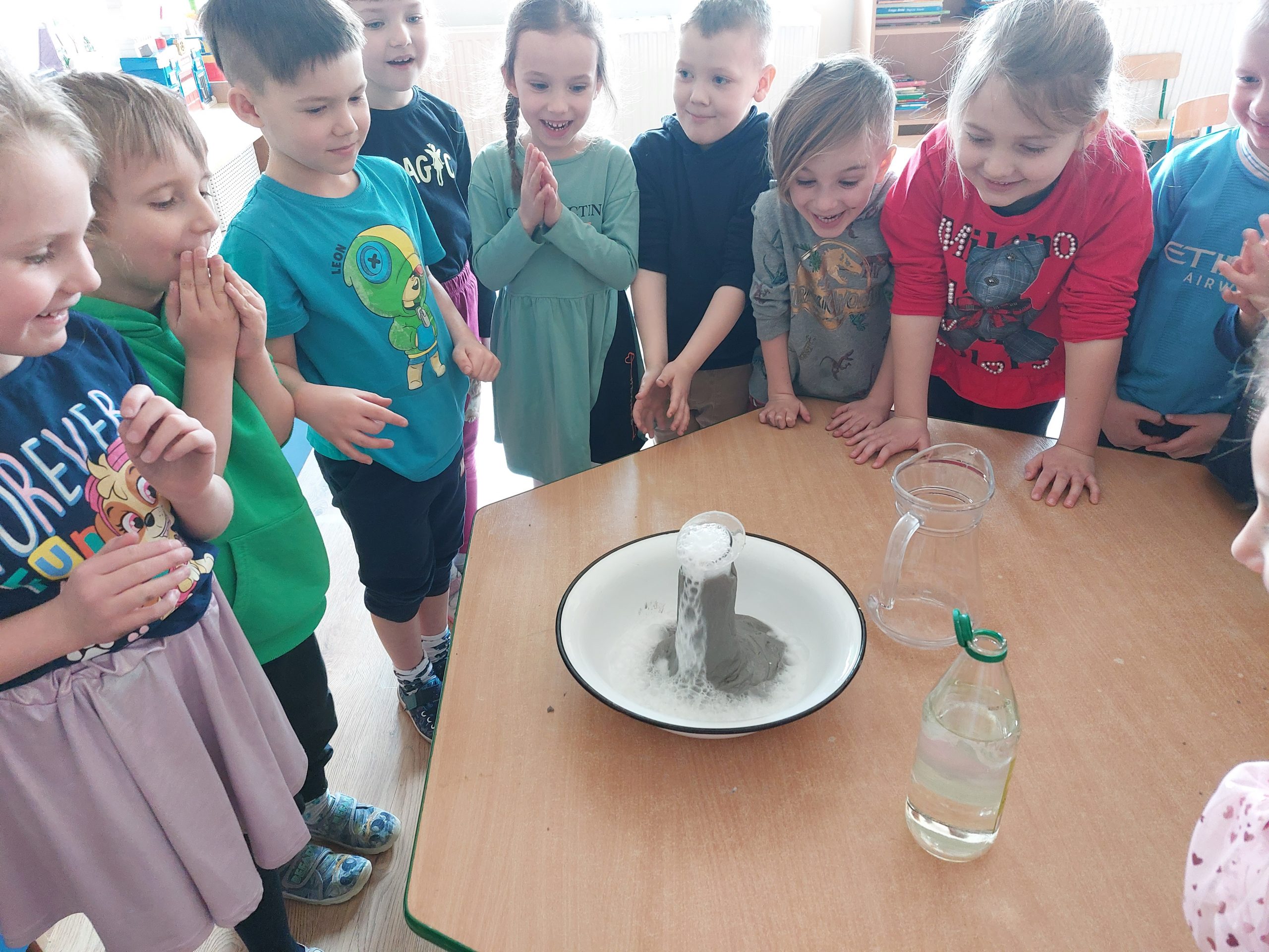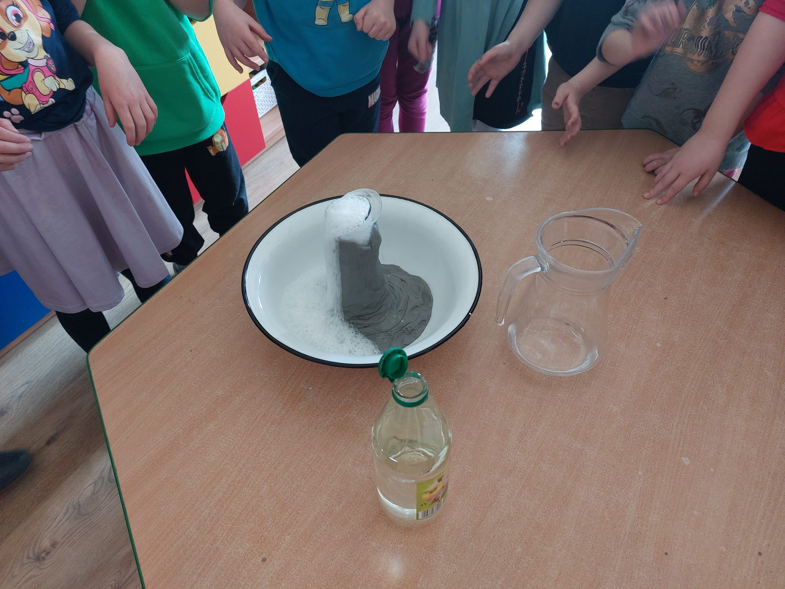 Dzieci wykonały wraz z nauczycielem wulkan z sody i octu.