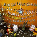 Przygotowane przez dzieci skarpetki zdobiły kącik patrona w holu głównym.