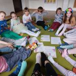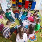 Dzieci poznały historię Skarpetki Fredzi, która różni się od pozostałych Skarpetek z miasta Skarpetkowa. Dzieci zapoznały się z ideą Dnia Kolorowej Skarpetki. Dzięki temu , miały okazję poznać sławne osoby z Zespołem Downa, dowiedzieć się w jaki sposób możemy wspierać osoby z ZD, a także najważniejszego motta – „Wszyscy różni, lecz równi”