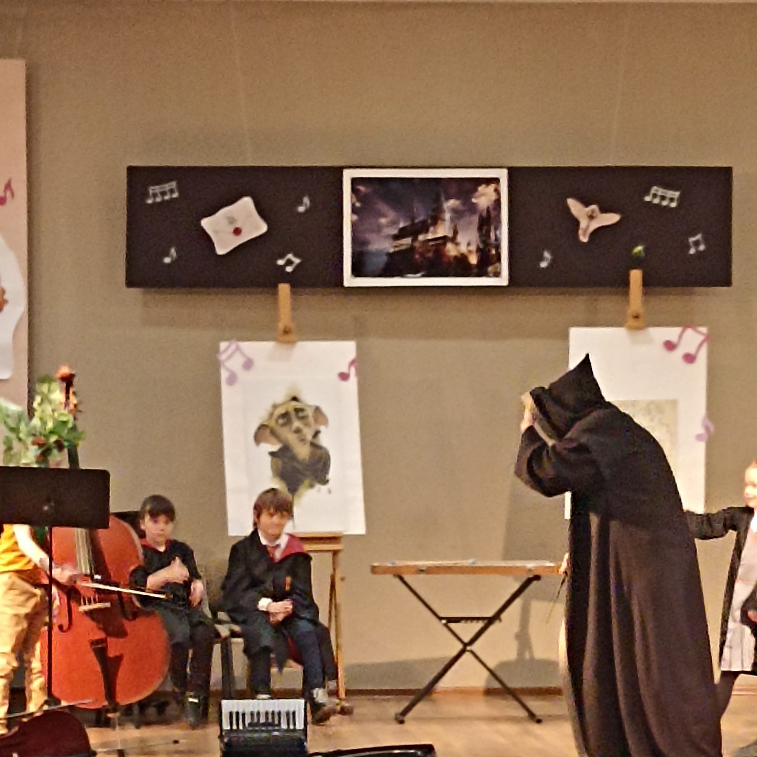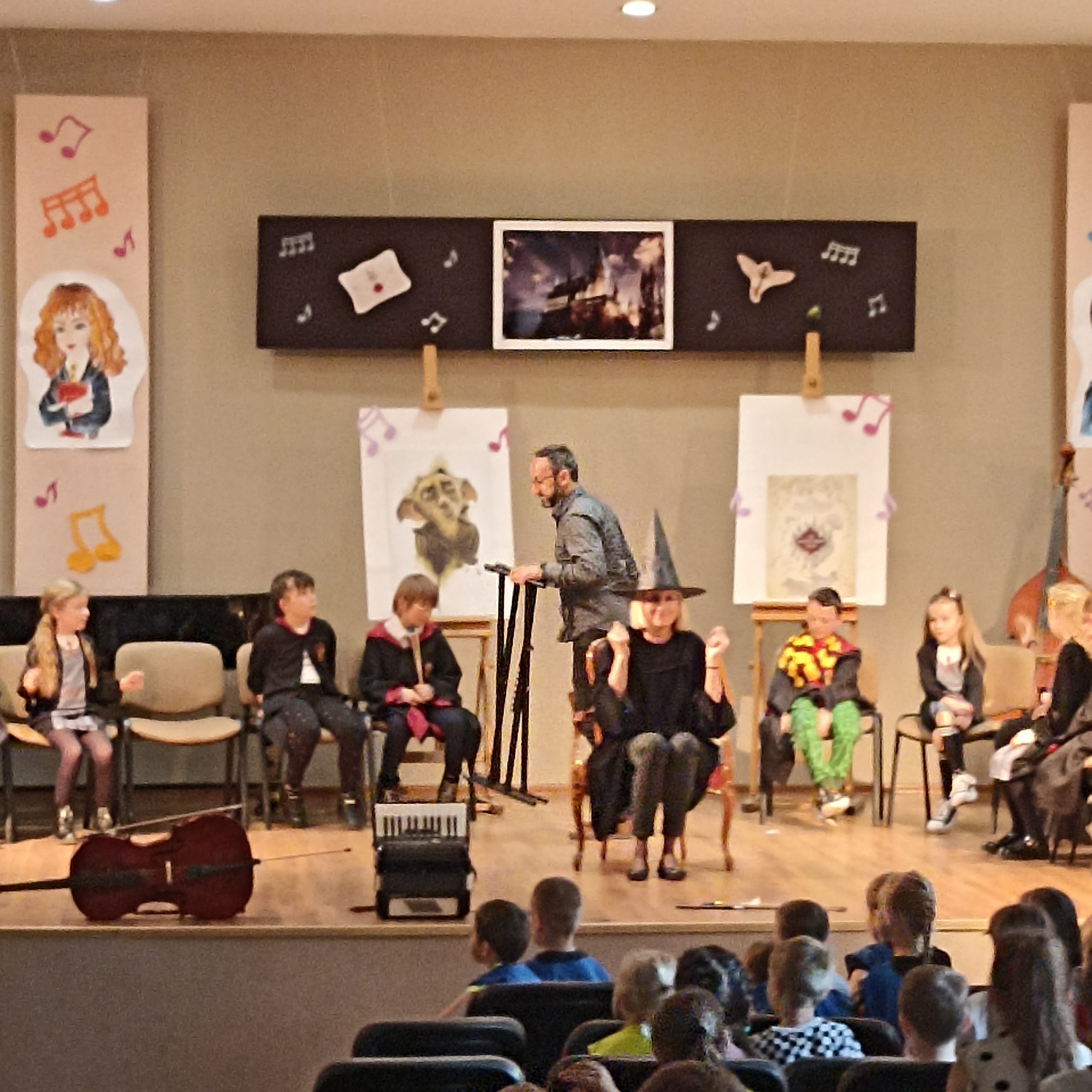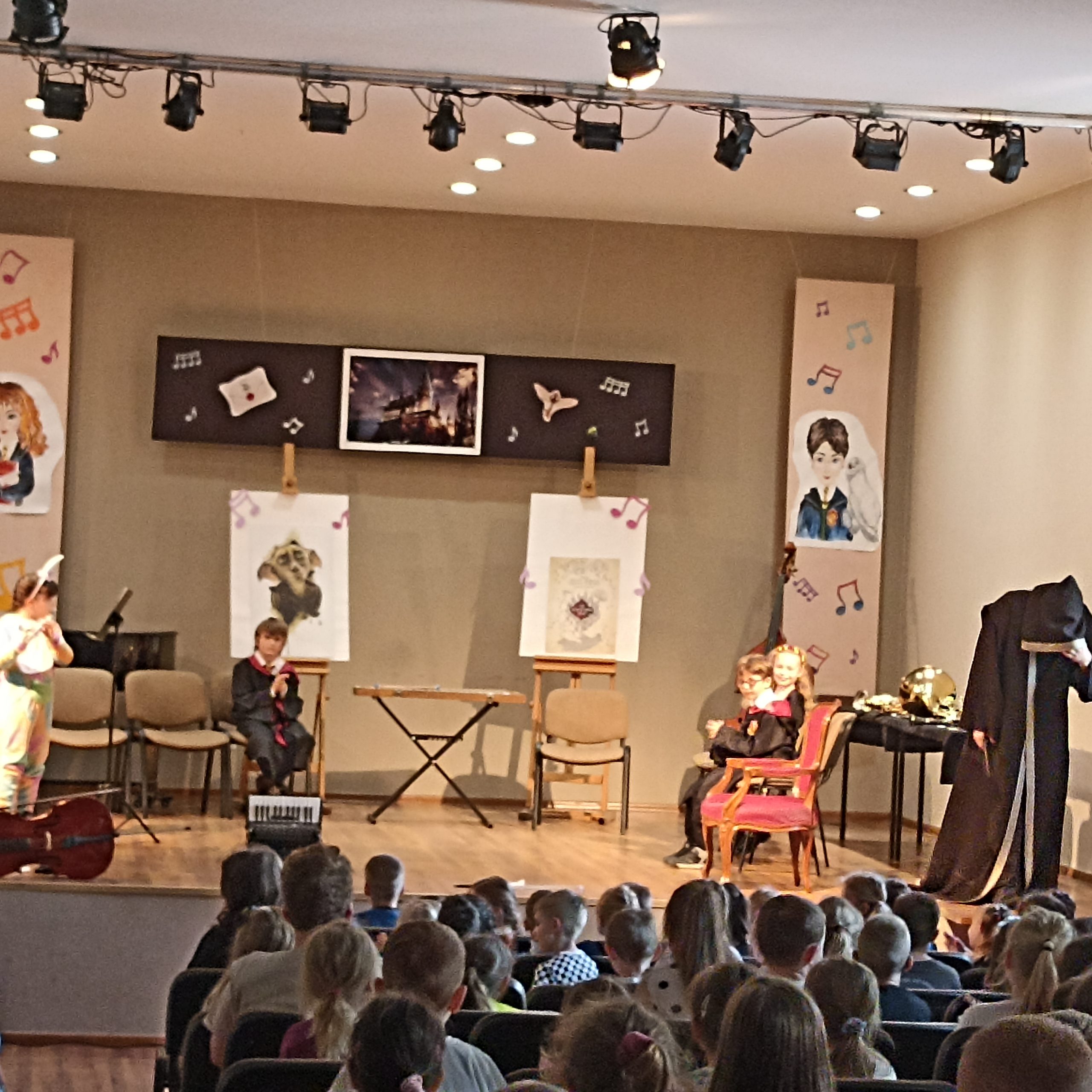 We wtorek 9 kwietnia dzieci z grupy Kłapouszki uczestniczyły w koncercie🎷🎸 zorganizowanym przez Szkołę Muzyczną w Ostrowie Wielkopolskim. Przedszkolaki mogły przenieść się w świat Harrego Pottera dzięki uczniom i nauczycielom z szkoły muzycznej, którzy stworzyli przepiękny program muzyczny🪗🥁📯.