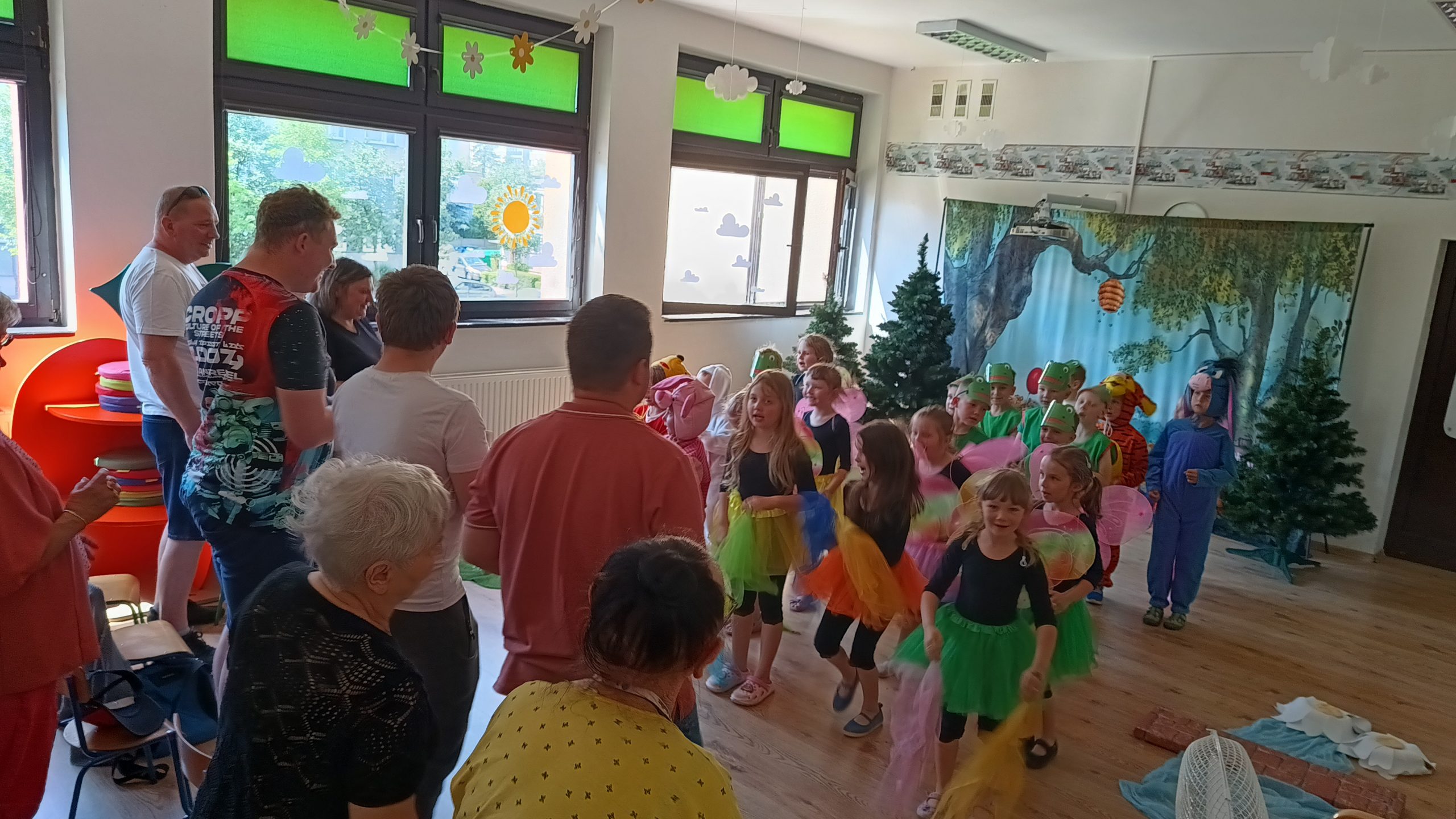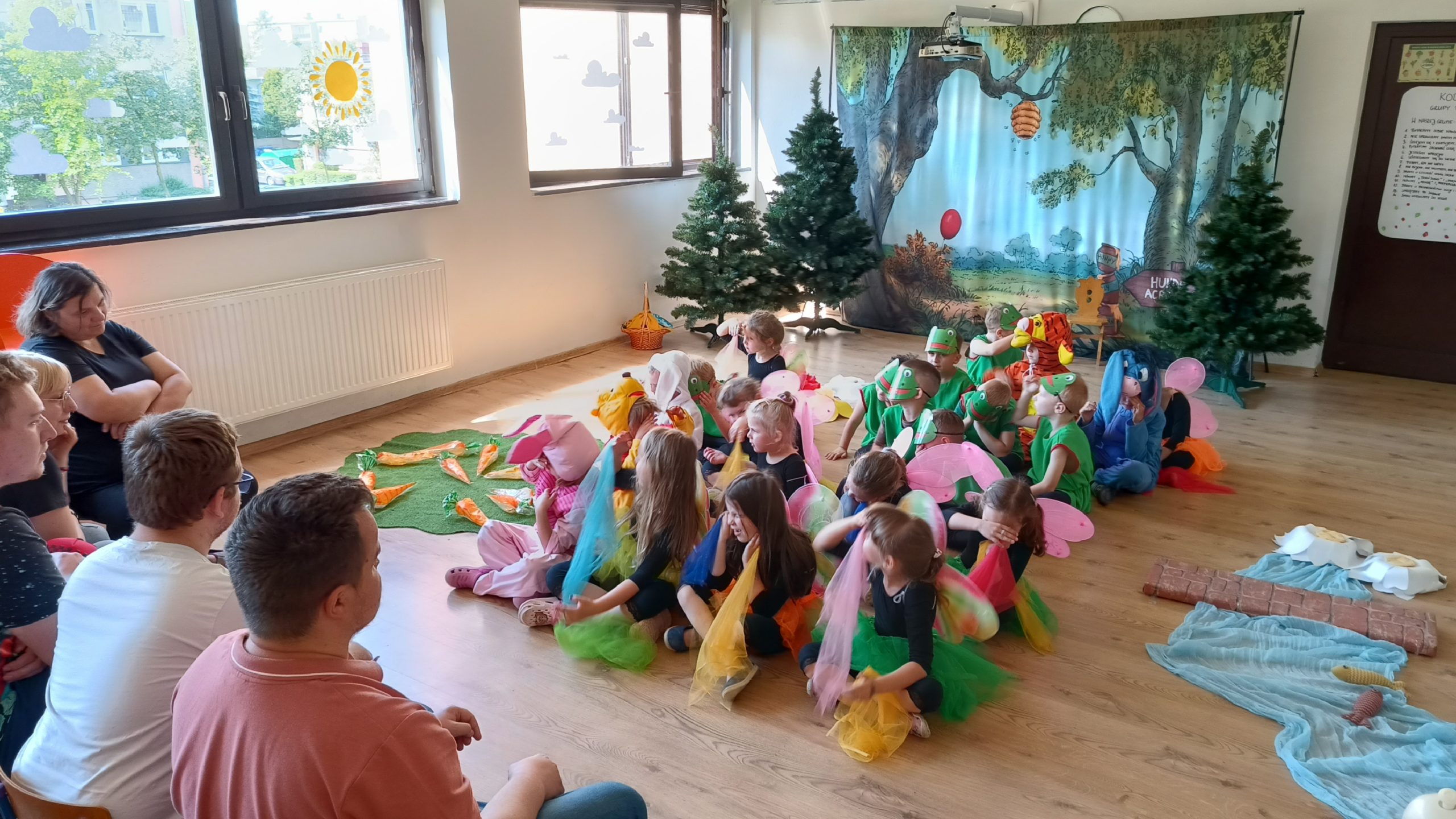 We wtorek 21 maja grupa Pszczółek gościła przyjaciół z Warsztatu Terapii Zajęciowej oraz Dziennego Domu „Senior +” na spotkaniu wieńczącym roczną współpracę grupy z placówkami. Dzieci wystąpiły dla gości w przedstawieniu teatralnym pt. „Lato Kubusia Puchatka”, a także zaprosiły widownię do udziału we wspólnych zabawach muzyczno-ruchowych. Spotkanie przyniosło wszytskim wiele radości i uśmiechu.