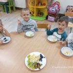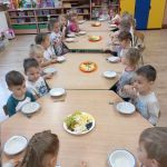 W czwartek 3.10 w gr Kangurków odbył się Dzień Owoców. Dzieci ćwiczyły umiejętność przeliczania, segregowania i układania rytmów. Przedszkolaki poznały też wartości zdrowotne płynące z jedzenia owoców. Największą atrakcją było przygotowanie sałatki owocowej i jej skonsumowanie.