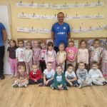 W dniu dzisiejszym tj. 3 października 2024 naszych przedszkolaków odwiedzili dwaj Panowie – trenerzy – ze szkółki piłkarskiej „Akademia Krecika”. Przedszkolaki bardzo chętnie dołączyły do wspólnej zabawy z piłką i z dumą prezentowały swoje sportowe możliwości. Zabawy bardzo podobały się naszym wychowankom. Dziękujemy Panom za przybycie.