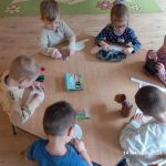 W czwartek 14.11. grupa Kangurków obchodziła Dzień Kredki. Była to świetna okazja do zabaw ruchowych, utrwalenia kolorów, przeliczania i porównywania długości. Dzieci przyniosły z domu swoje ulubione kredki, którymi pokolorowały swoje opaski. Ponadto nasze średniaki wykonały pracę plastyczną z wykorzystaniem plasteliny, a także pracę z wykorzystaniem metody Doroty Dziamskiej „Edukacja przez ruch”.