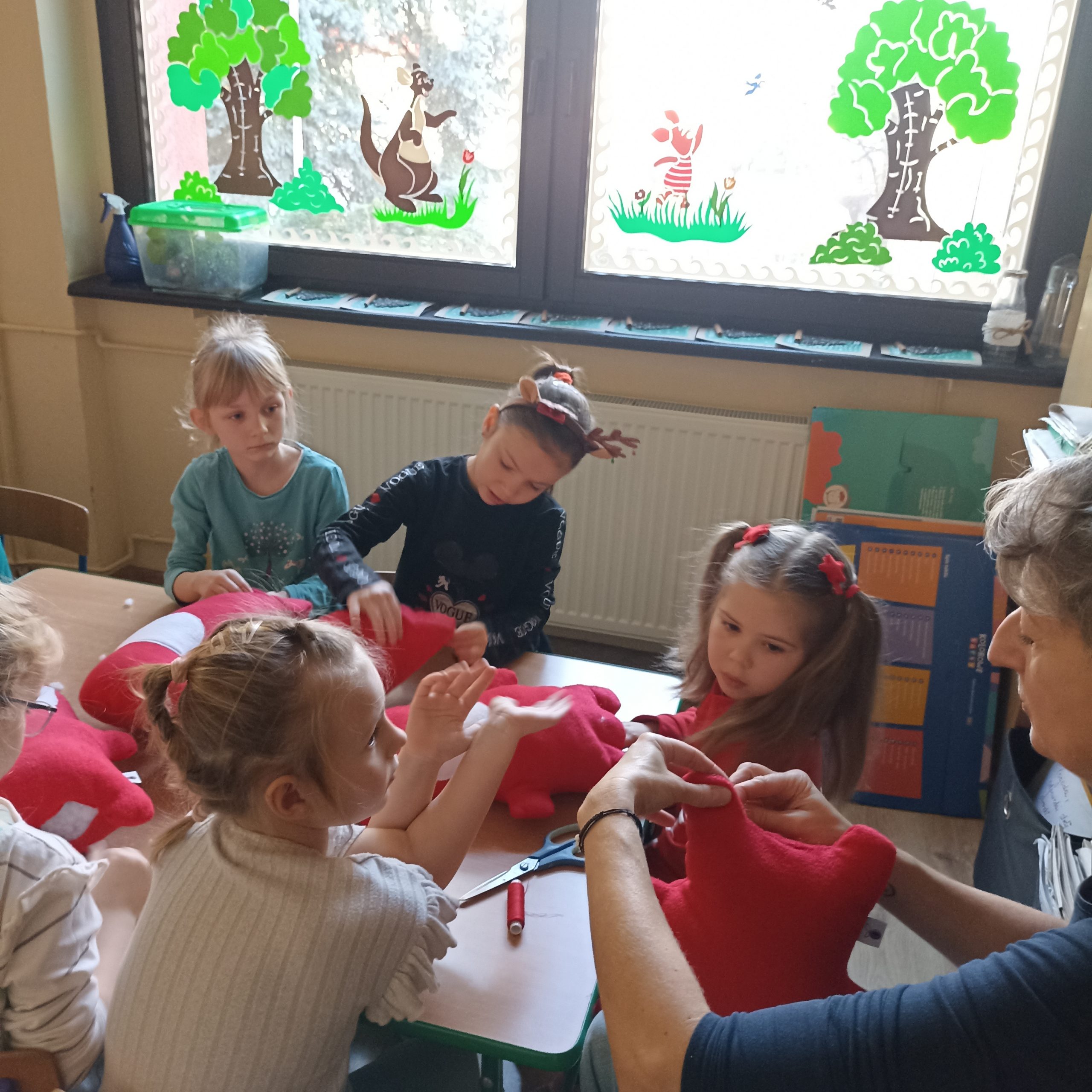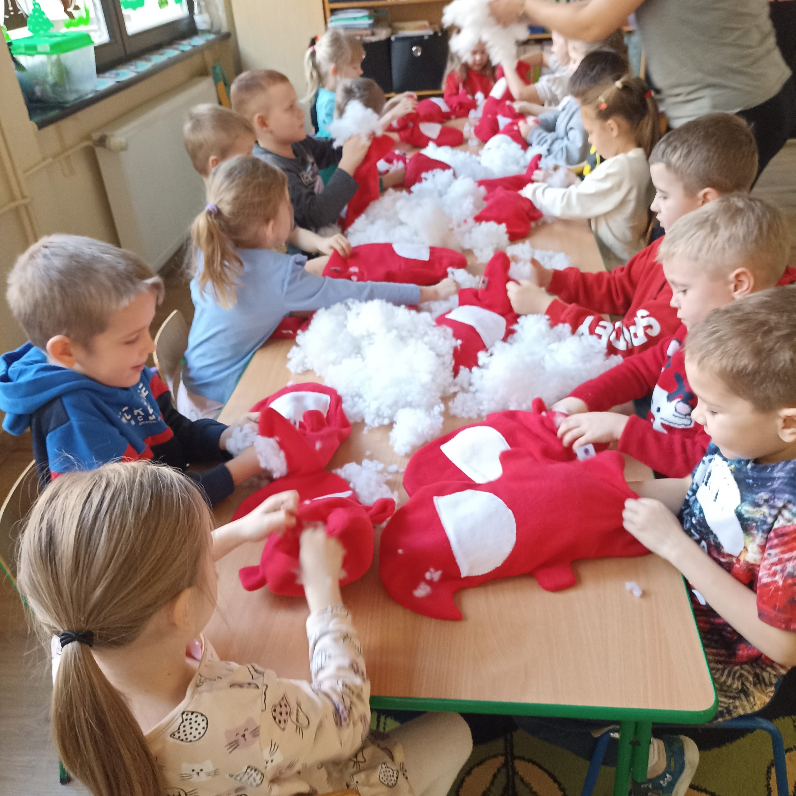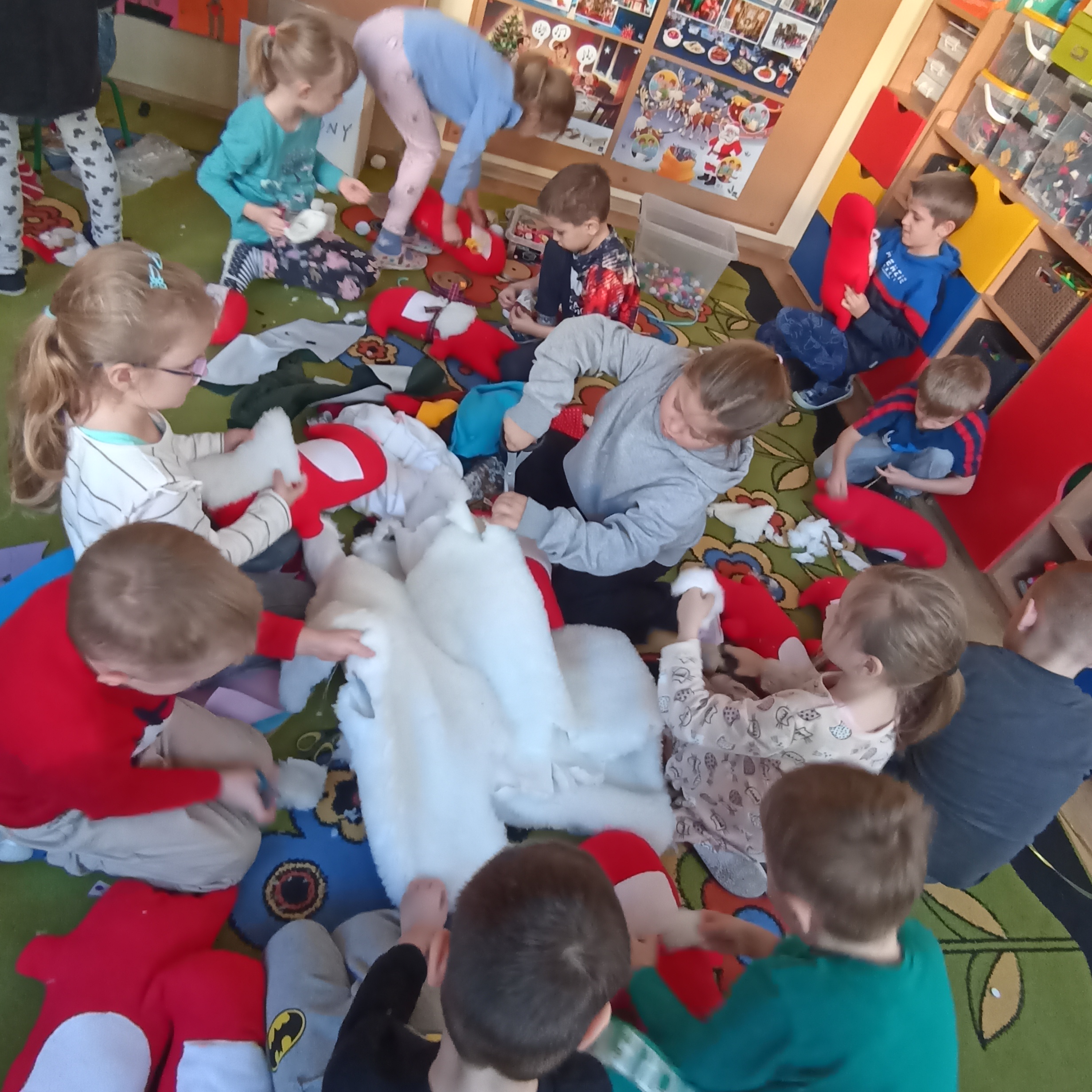 Dzieci z grupy Kłapouszków rozpoczęły przygotowania do świątecznego, magicznego czasu. W poniedziałek 2 grudnia gościły panią Magdę z pracowni artystycznej Dzika Śliwka, która pomogła dzieciom stworzyć  cudowne poduszki -przytulanki  w kształcie Mikołaja.