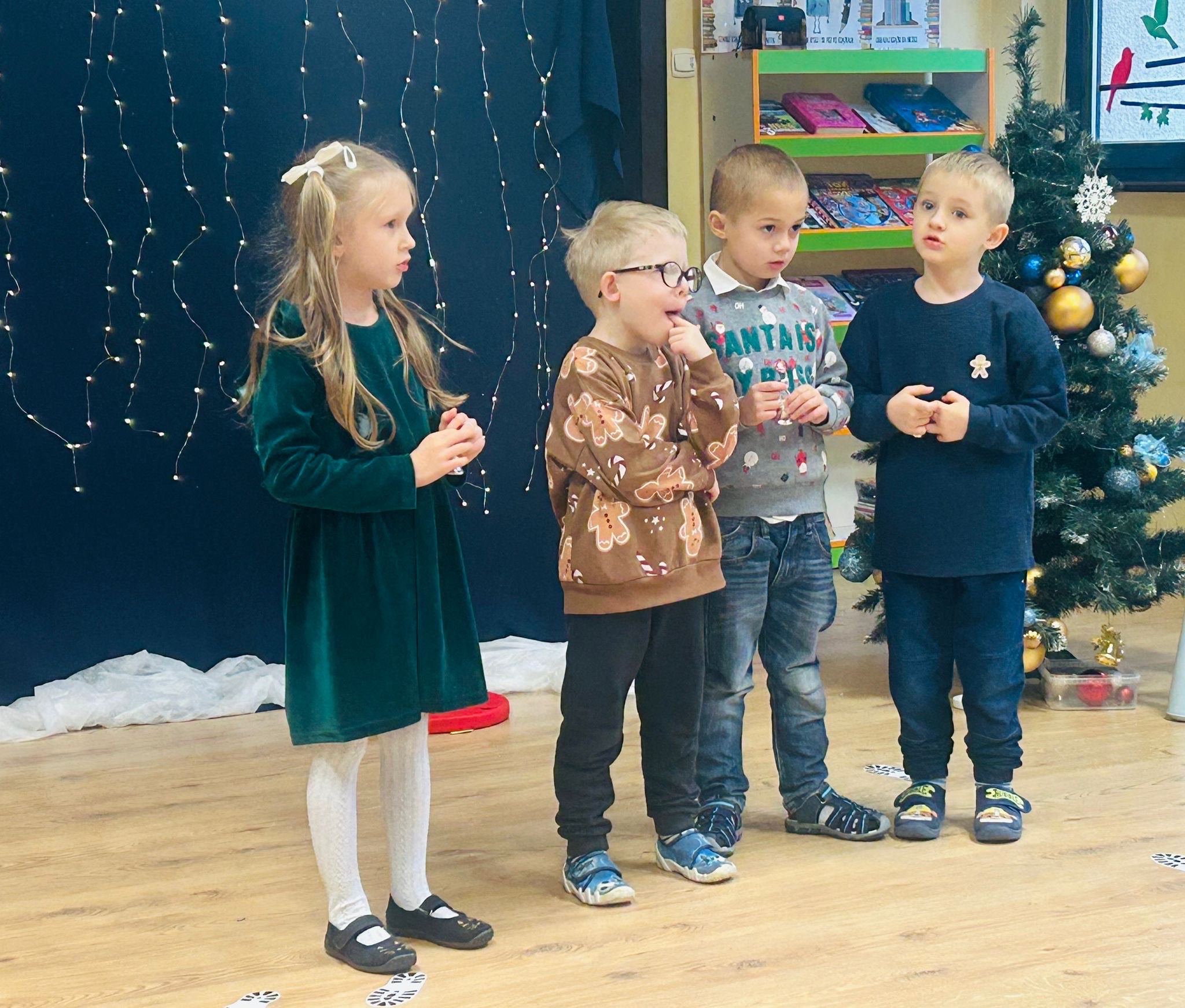 W poniedziałek 16 grudnia w naszej grupie, odbyła się uroczystość z okazji Świąt Bożego Narodzenia. W ten wyjątkowy dzień, Sówki zaprosiły swoich kochanych rodziców na spotkanie, podczas którego wprowadziły wszystkich w świąteczny nastrój. Dzieci zaprezentowały krótkie przedstawienie pt.: „Idzie Mikołaj”. Po zakończonych występach, dzieci wręczyły rodzicom świąteczne prezenty i złożyły życzenia.