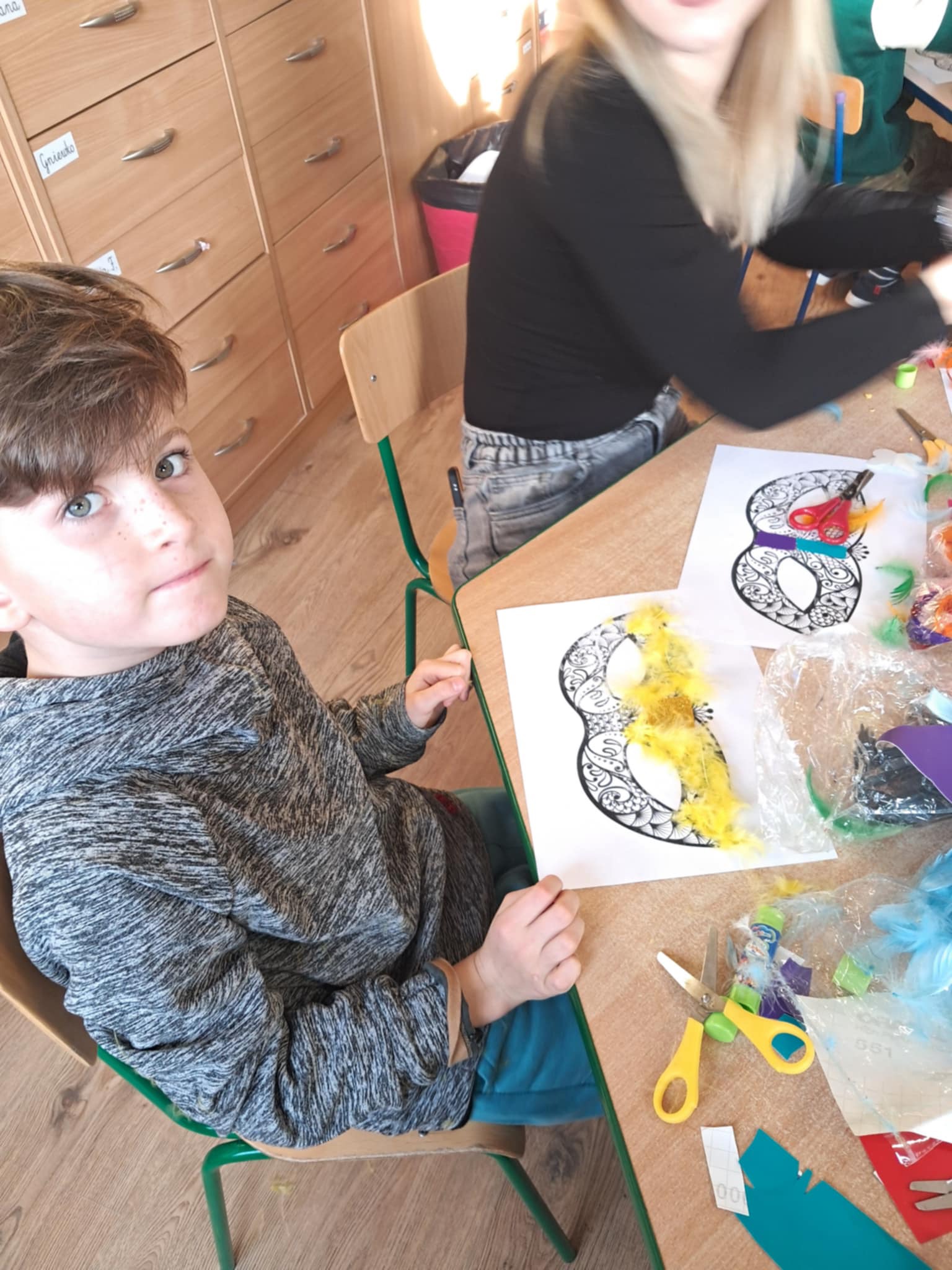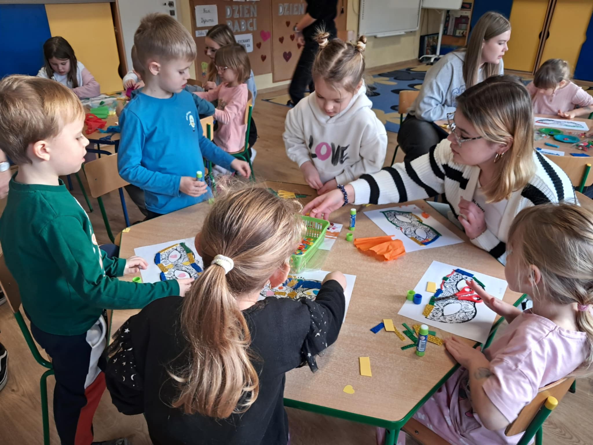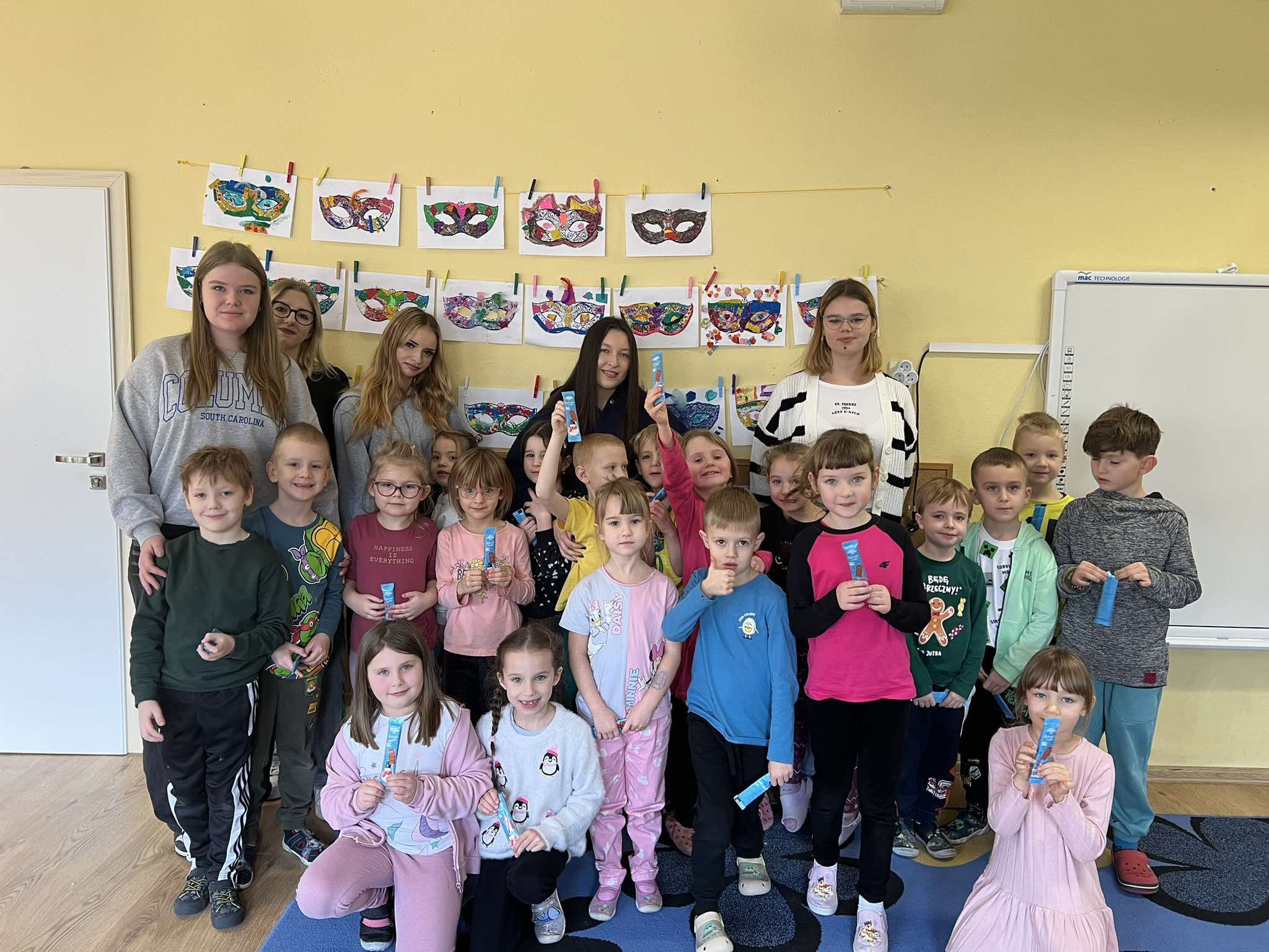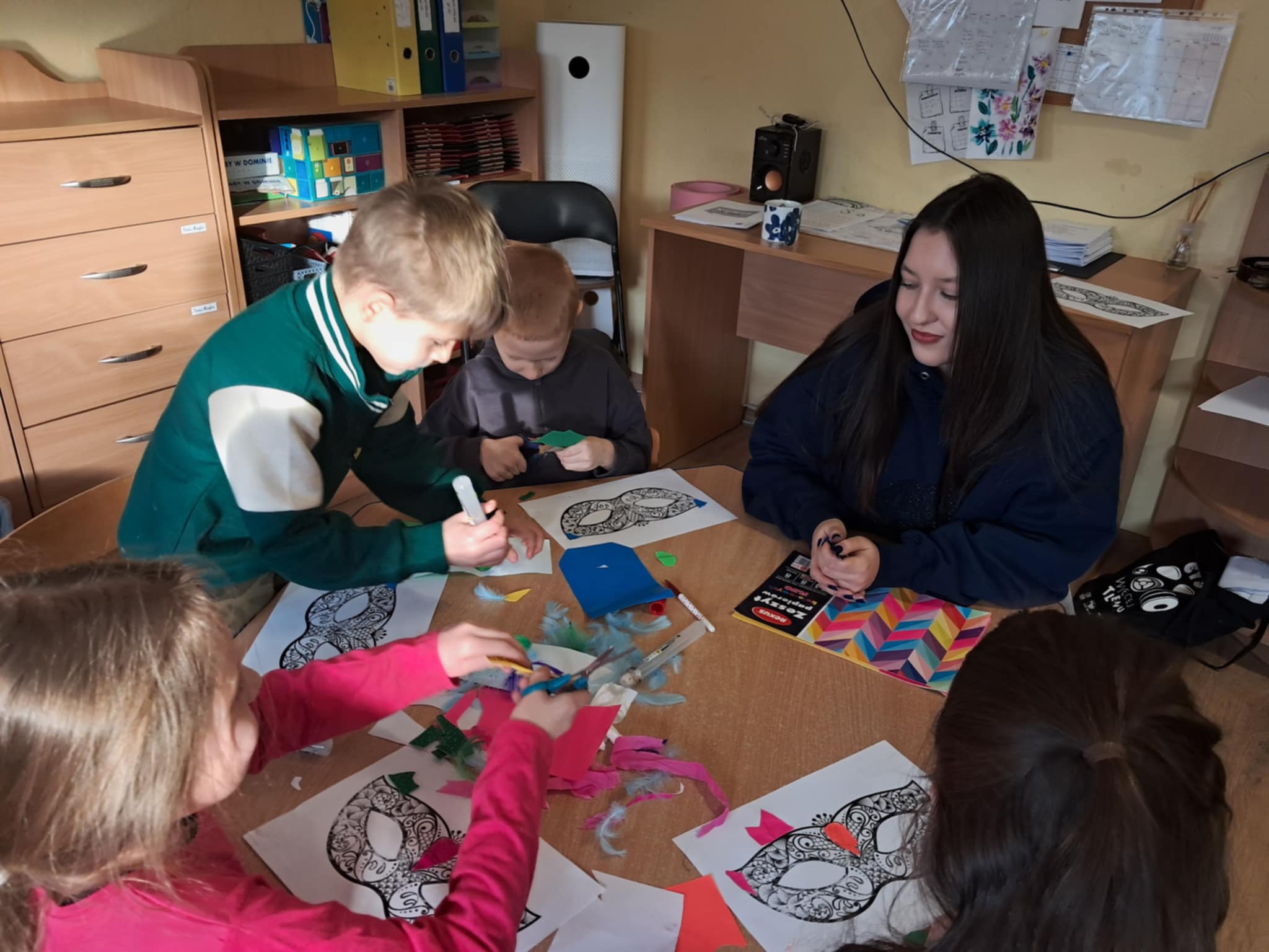 W dniu 14 stycznia do naszej grupy przybyło Koło Wolontariatu przy Szkole ZSBE w Ostrowie Wielkopolskim wraz z Panią Iloną. Wolontariuszki wspierały nasze dzieci podczas wykonywania pracy plastycznej – maska karnawałowa. Dzięki współpracy mogły zawiązać się nowe znajomości. Pomimo różnicy wieku bawili się znakomicie – przy stołach dało się słyszeć ciekawe rozmowy i śmiech. Nie będzie to nasze ostatnie spotkanie z dziewczynami z Wolontariatu. Już planujemy kolejną wizytę wiosną. Dziękujemy bardzo serdecznie naszym gościom za wizytę.
