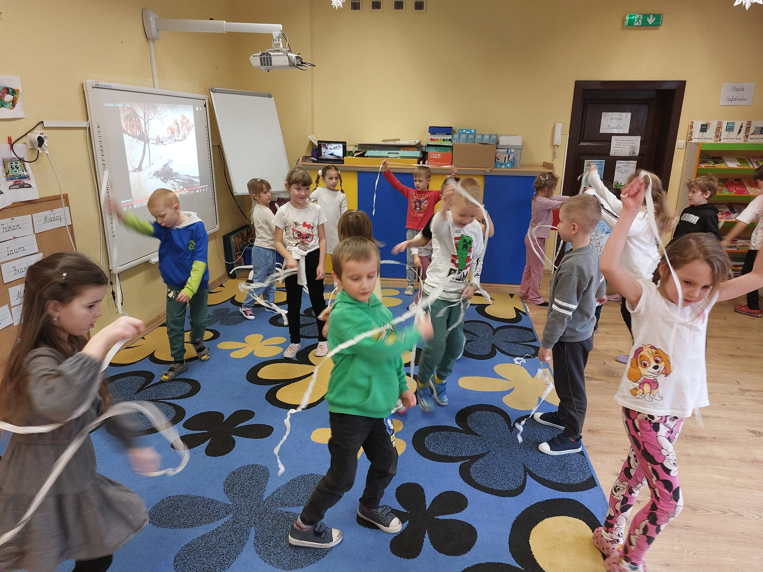 Dnia 6 lutego na przekór aurze dzieci z grupy Pszczółek wzięły udział w zabawach kolorem białym.